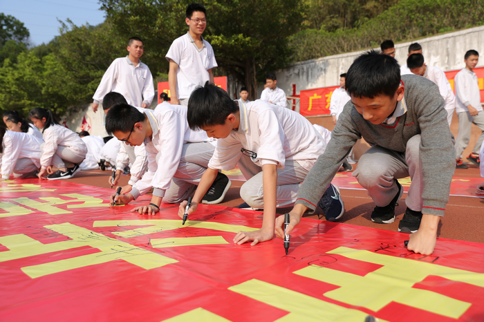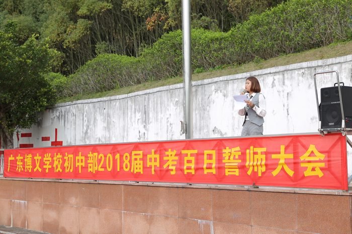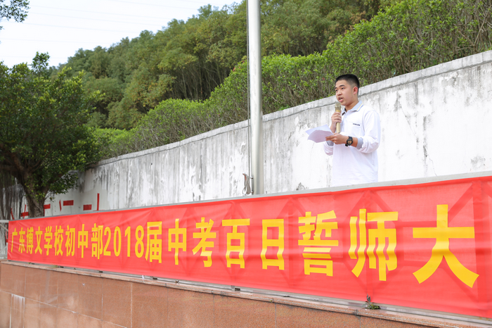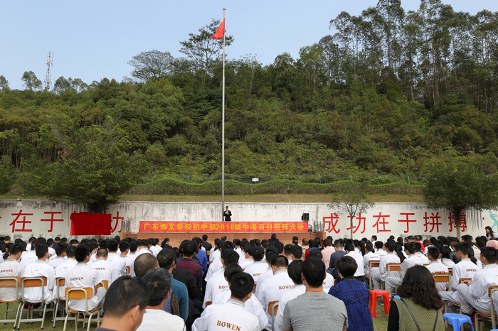 3月12日下午,广东博文学校隆重举行了“2018届中考百日誓师大会”。学校领导、全体初三年级师生及部分家长代表参加了此次大会。在庄严的升旗仪式后,誓师大会正式开始。