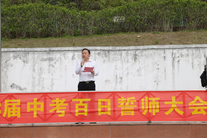 “同学们,请相信在向中考进军的征途中,你们决不是孤军奋战,因为全体初三老师早已作好了充分的准备,他们要与同学们一百天同甘共苦,一百天同舟共济。”教师代表吴敏老师发言让学生们对中考的信心更足了。