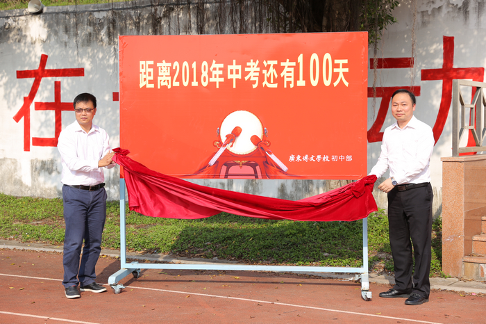 紧接着揭牌仪式正是拉开“中考百天倒计时”的序幕,从校领导手中接过倒计时100天的“军令状”,全体初三师生团结奋进,争创中考新辉煌。