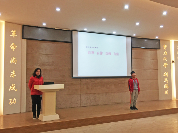 接着,陈老师结合近期的表现及学校的规划,根据毕业年级的特点,有针对性地提出了“四自”奋斗目标——自尊,自律,自强,自信。