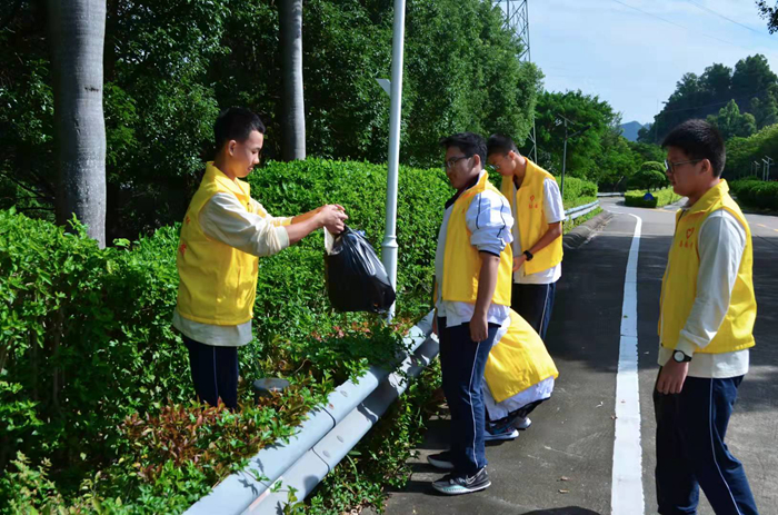 为了强化中学生思想道德素质和志愿服务精神,争做优秀志愿者,增强中学生奉献服务精神,创建和谐、文明、美丽校园。广东博文学校团委书记苏嘉浩老师组织志愿者协会于2021年10月18日在校内河堤旁开展了以“美化环境、贡献自我”为主题的清洁卫生的志愿活动。