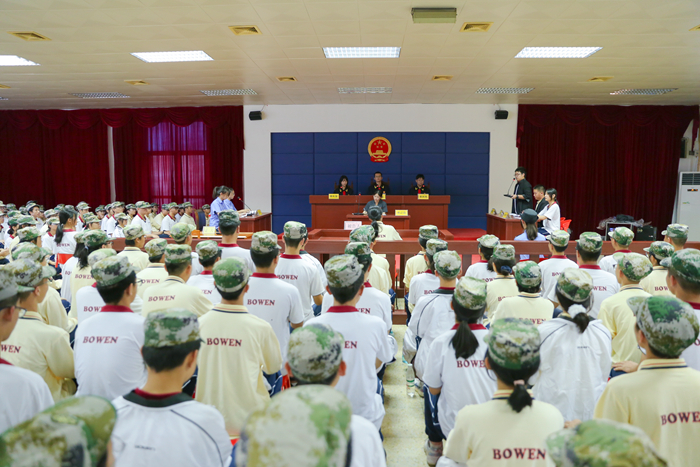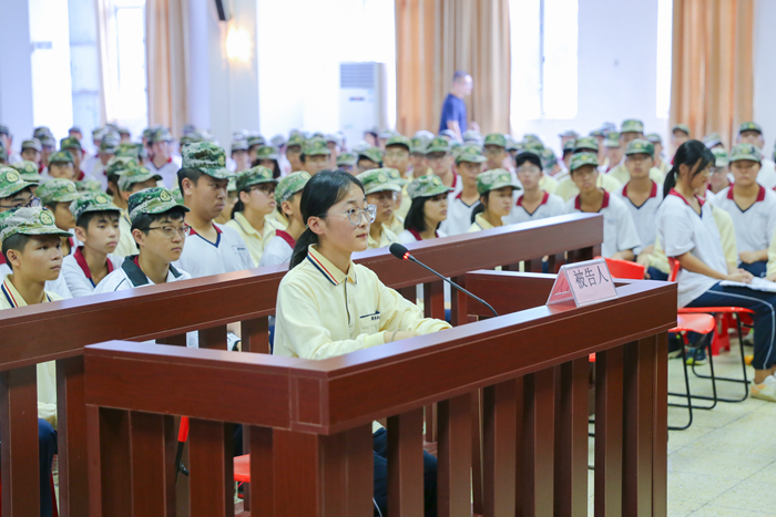 模拟法庭是近年来中山市中级人民法院、中山市教育和体育局对学生进行法治教育的创新途径。广东博文学校历来重视法制教育,军训前期就已经对同学进行了普法活动。但模拟法庭专业性强,程序复杂,这对于高一新生来说是极大的挑战。