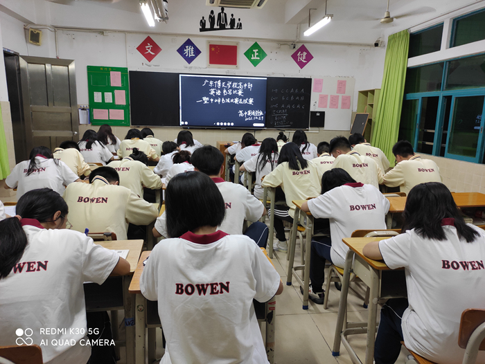为了提高全市高中学生的英语书写能力,中山市教研室英语科将于11月19日进行一年一度的全市高中学生书写选拔赛。广东博文学校高中部也利用这一重要契机加强对我校高中学生英语书写的训练和检测,英语科组于2021年10月份先组织全体班级同学参加,再精选出每个年级的书写优秀的前15名同学再次进行第二轮筛选。