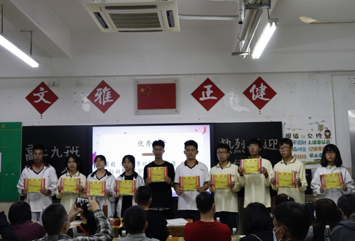 本次家长会主要有以下几部分内容:班级亮点介绍、任课教师介绍、表彰优秀学生、学生学习成果展示、家校合作共进。通过前期的充分准备,各班家长会在优秀学生的主持下顺利召开。学生们积极展示自我、展示班级、展示自己丰富的高中生活。科任老师们也到各自任教的班级与家长会面,分析学生在学校的学习情况,为家长答疑解惑。班主任把控全场,确保家长会顺利进行。家长们认真了解学校、了解班级、了解每位孩子的学习情况。除此之外,各班还安排了一些有趣的活动环节,如学生课文抽背、才艺表演等精彩内容。