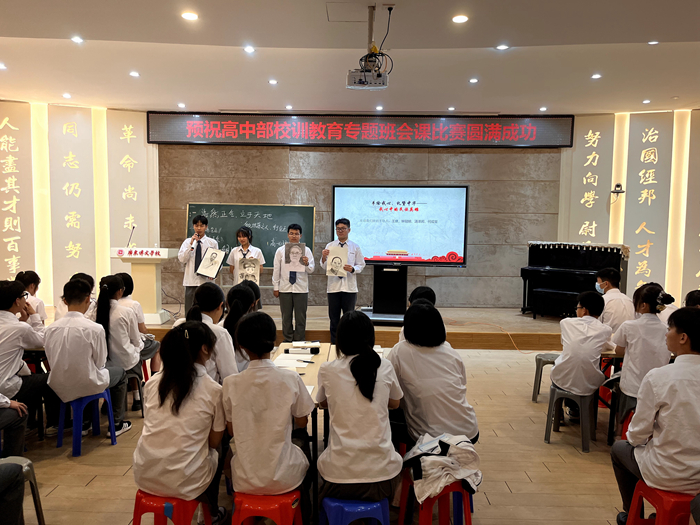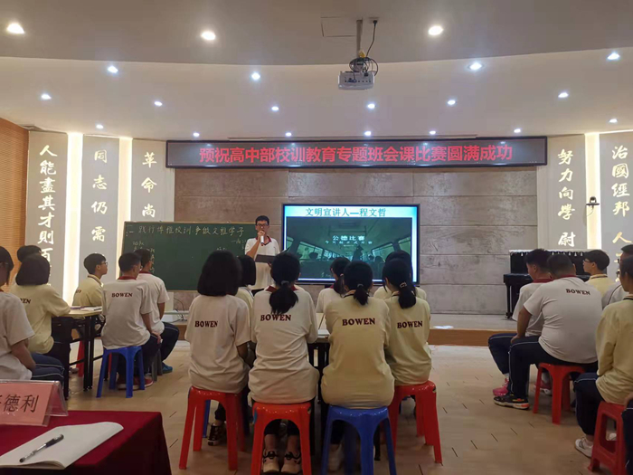 为进一步规范班会课的操作流程,充分发挥主题班会在班级管理的作用,深化校训教育,提高班主任的育人水平,培养和打造一支高素质、高品位、高水平的德育队伍,广东博文学校高中部于11月下旬至12月中旬举行了“校训”主题班会课比赛。