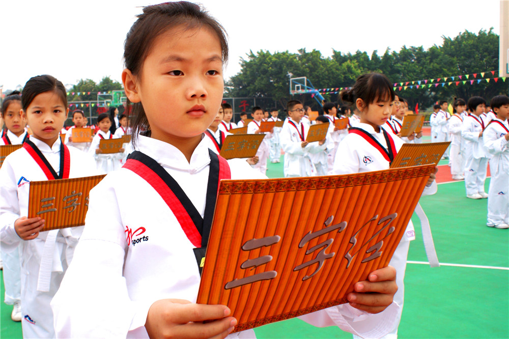 本次教学开放日活动,安排有艺体特色课程展示和课堂教学展示。伴随着舒缓优美的音乐声,孩子们安静有序地走出教室,来到操场,在同学们整齐嘹亮地齐呼校训——“博文博雅、至正至健”的口号声中,艺体特色课程展示活动拉开了序幕。首先带来的是“文雅篇”之经典诵读,一年级的宝贝们表演的是《古诗新唱》和武术操《功夫少年》,童音袅袅、气骨铮铮,掀开了中华传统文化的神秘面纱;二年级诵读《三字经》,节奏明快、朗朗上口,彰显博文学子自信风姿;三年级轻吟浅诵《弟子规》,铿锵音韵,英姿飒飒;四年级《声律启蒙》,语言优美、格韵悠悠;五年级诵读现代诗《沁园春·雪》,一腔壮志满怀、几度畅想古今;六年级《自古英雄出少年》,惟愿今朝立志、他朝亮剑。随后,在博文管乐社团悠扬的萨克斯乐声中,“正健篇”之“一年级一特色”展示活动正式开始。三年级啦啦操旋律明快,学生们身影矫健,让参观者们享受了一场视觉盛宴;二年级跆拳道整齐划一、沉稳有力,让家长们叹为观止;五年级的《“绳”彩飞扬》活泼生动、快乐有趣,跳出了不一样的童年风采;六年级的太极扇表演刚柔并济、形神兼备,展现出中华传统武术的精华。最后,二至六年级同学合演太极拳,一招一式,举手投足焕发着自强不息的民族生命力……这一系列年级特色活动展示让我们看到了孩子们在不同阶段不一样的风采。看到孩子们丰富多样的活动形式,家长们手中的手机不时闪动,现场掌声雷动。