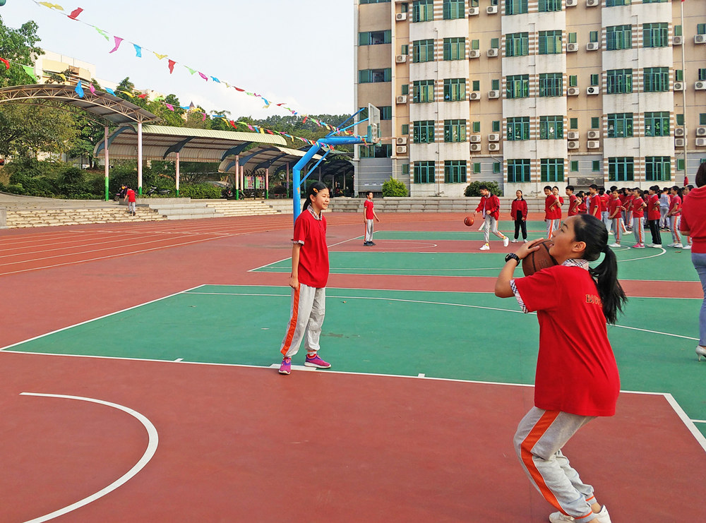 4月18日,广东博文学校小学部篮球场传来了此起彼伏的欢呼声,六年级学生正举行一场别开生面的定点投篮比赛。