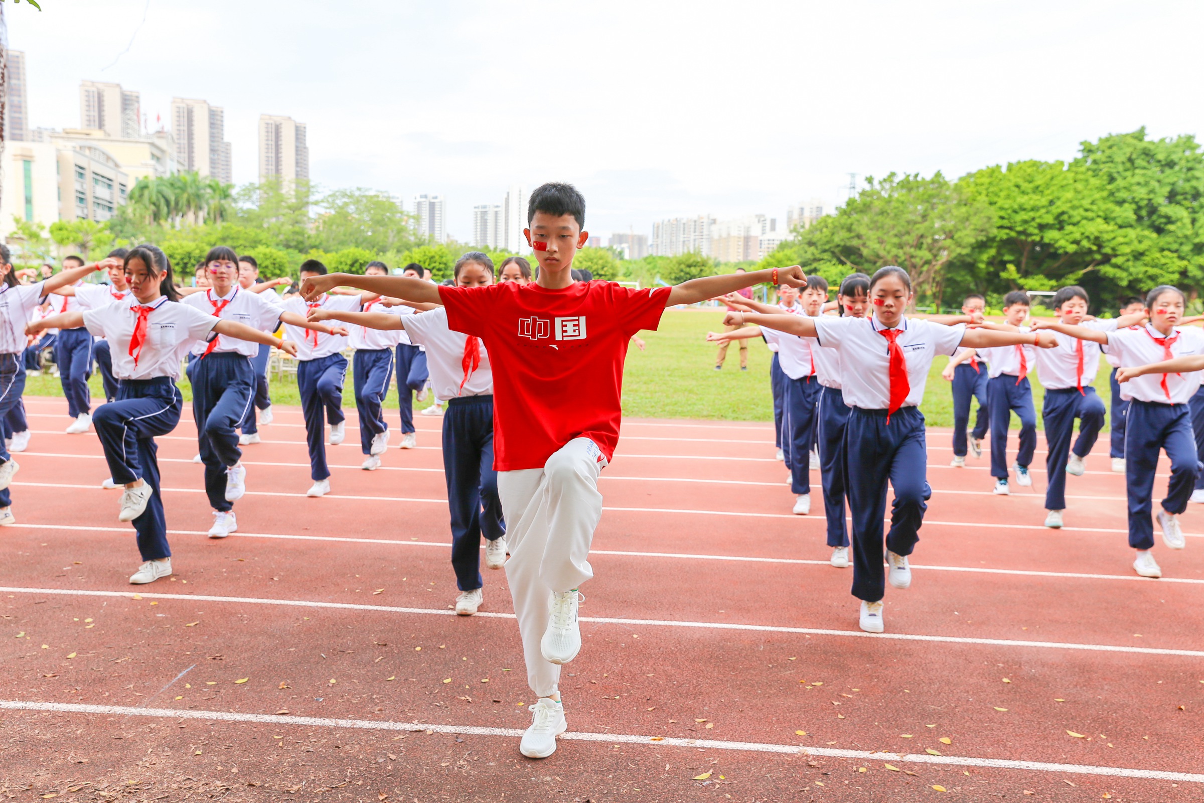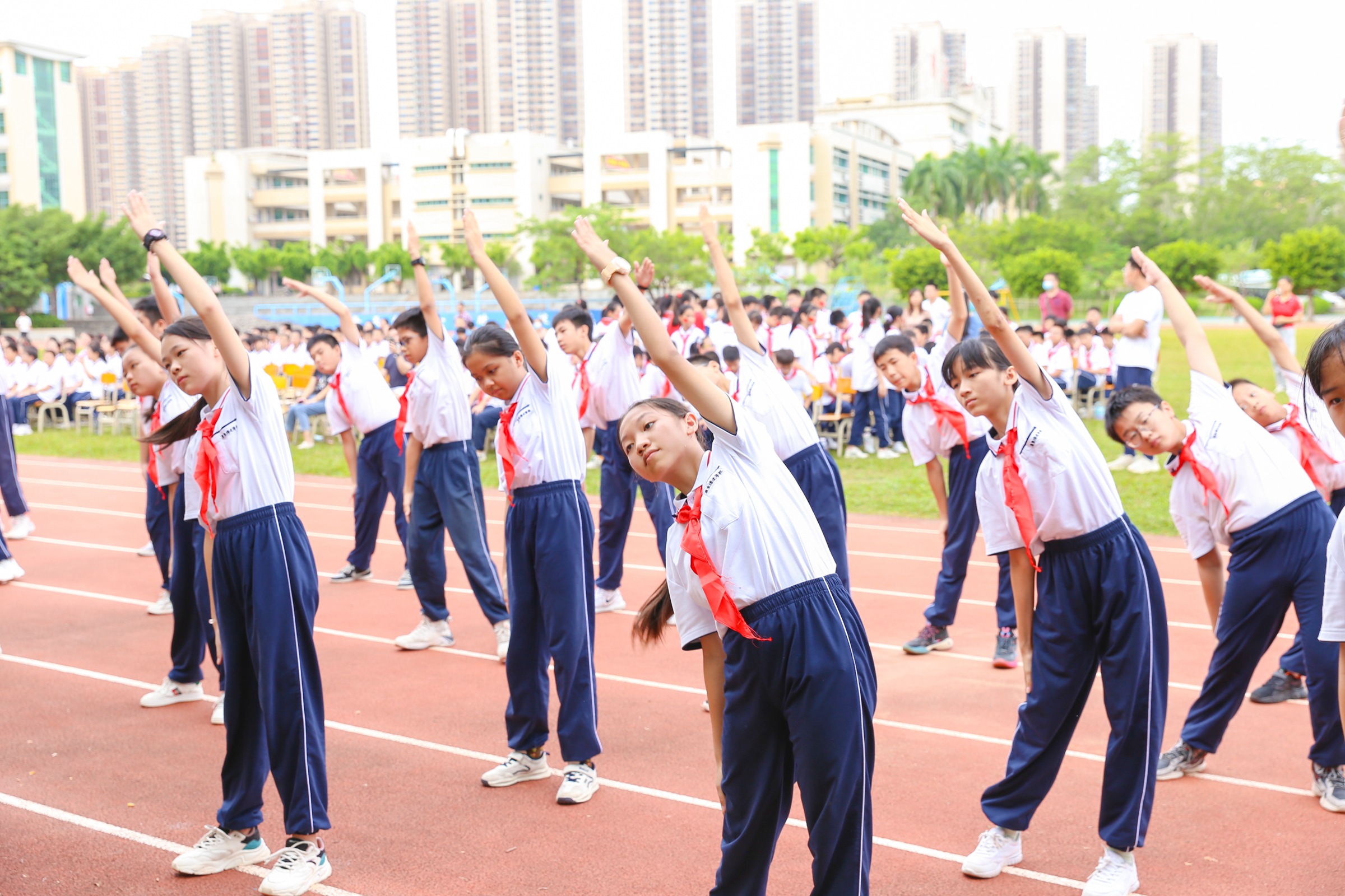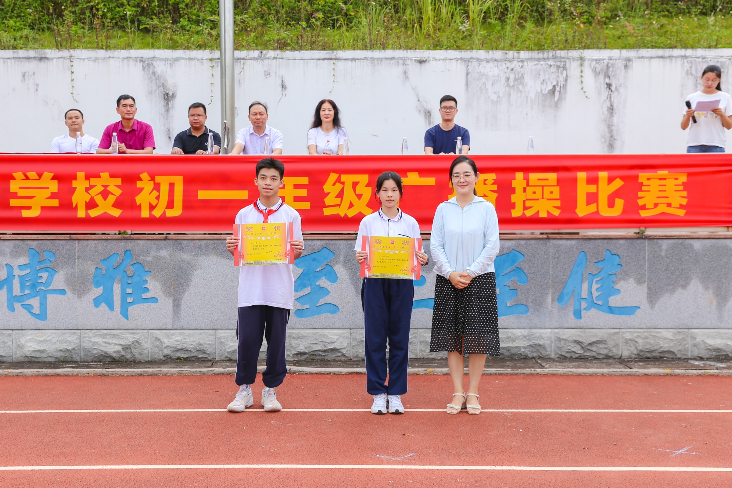 健康第一,推进“阳光体育运动”,9月28日上午,广东博文学校举行以“青春校园、魅力无限”为主题的队列队形暨广播体操比赛。初中部校长汤勇、体艺处主任王萍、初中部行政领导现场观看了本次比赛。比赛由学校团委副书记左冬妮主持。