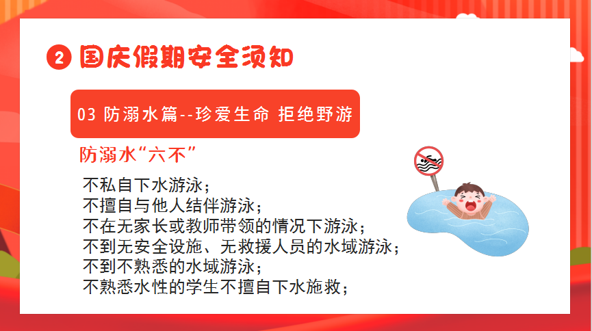 班会上,各班班主任利用图片、故事、视频等多种手段,生动形象地向学生传授安全常识,引导他们及时巩固安全方面的知识,提高自我防护能力,从疫情防控、防溺水安全、交通安全、网络安全、饮食卫生、消防安全等方面进行了教育。重点强调了防溺水安全,教育学生“防溺水六不”,并且呼吁同学们非必要不离市、不出省,绝不允许在疫情中高风险地区经停逗留,做好疫情防控,对自己和他人的生命安全负责。