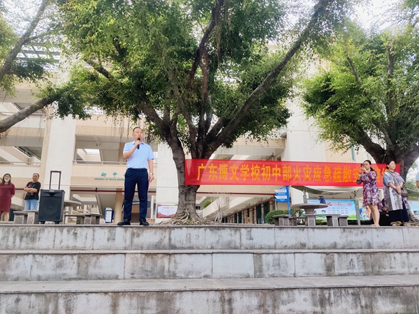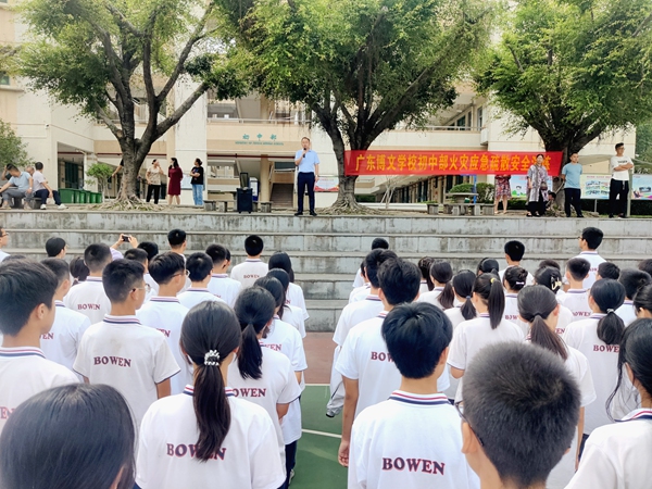 为了进一步强化师生安全教育,提高抗击突发火灾的应变能力,能有组织、迅速地引导学生安全疏散,以及掌握逃生的方法,广东博文学校初中部11月15日举行了火灾应急疏散安全演练活动。