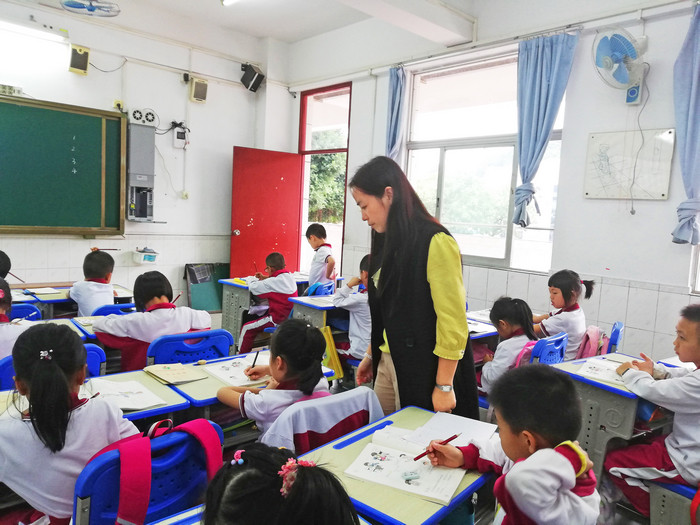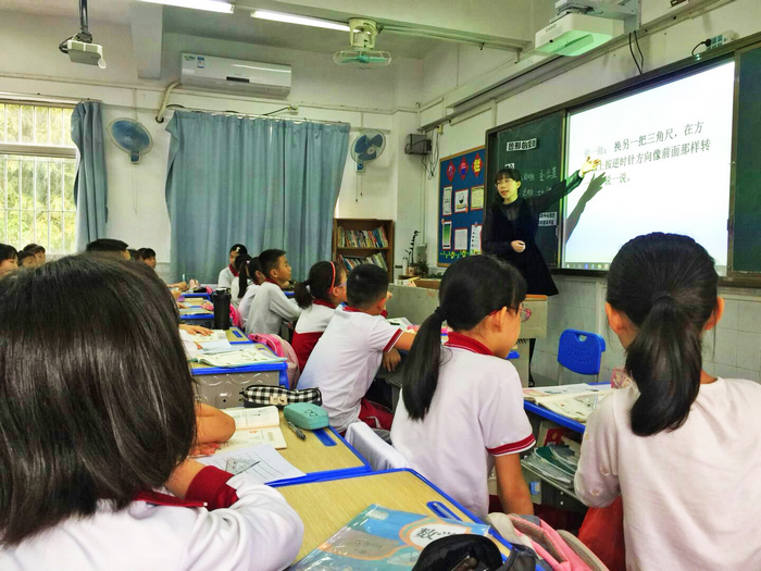 一年级孔德影、吴冬梅两位老师从实物对比到算式对比,有层次地教会学生理解《有小括号的计算》 ;二年级姚成思、李华珍两位老师执教的综合实践课《小小设计师》,充分尊重了学生们已有的经验与现场生成的观点,让孩子在自由、快乐的探索活动中不仅学到了知识,更体验了数学学习的快乐;三年级吴燕燕、杨飞燕两位老师讲授了各具特色的《长方形、正方形面积的计算》,让学生在动手操作中获取知识;四年级罗烨娟、黄爱媚两位老师和学生们共同探究了《三角形的特性》,用3根小棒摆三角形和4根小棒摆四边形突显三角形的稳定性;五年级卜晓凡、石晓苑两位老师执教的《图形运动三----旋转》课前准备充分,引导到位,学生体验深刻,有利于学生学习方法的培养和数学思维的形成;六年级关志宏、邹淑兰两位老师用幽默、风趣的语言,激发学生的学习兴趣,引导学生对《整理与复习---数的认识》进行了有效的复习。