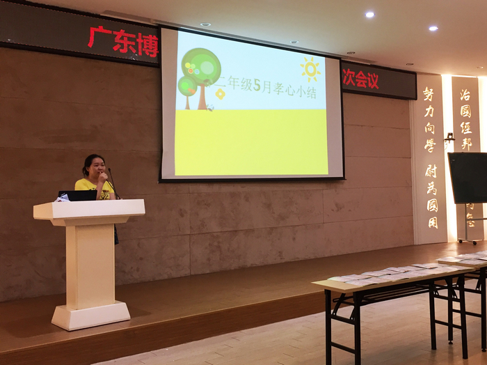 “百善孝为先,孝者德之本”。为弘扬中华民族的慈孝文化,加强对同学们的亲情教育,广东博文学校小学部二年级各班开展了“孝心活动”。活动开始同学们就行动起来,用自己的小手为家里做了很多力所能及的事情。经过一个多月的时间,活动收效显著,为了表彰同学们孝心行动的积极性,5月14日下午,二年级举行了由蒋老师主持的孝心行动小结暨表彰会。