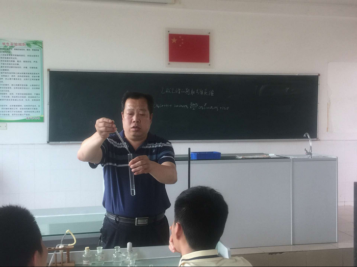 在教学中,教师要重视学生的探究性实验。5月17号上午第四节课在王家茂老师带领下高二(5)班学生在实验楼502进行了化学实验探究活动。本次实验主要探究生活中的几种常见有机物乙醇、乙酸、葡萄糖等的化学物理性质。实验过程当中学生认真实验,做好实验现象记录,思考实验现象原因,不停的向老师请教。