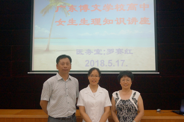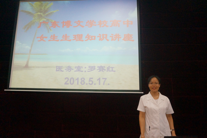 2018年5月17日,广东博文学校高中部开展“女生如何保护自己”的心理讲座。此次讲座由学校罗赛红医生和心理辅导老师郑璞玉针对青春期的女生该如何保护自己进行讲座,高中部和国际部的全体女生参加会议,高中部王家旭老师主持。