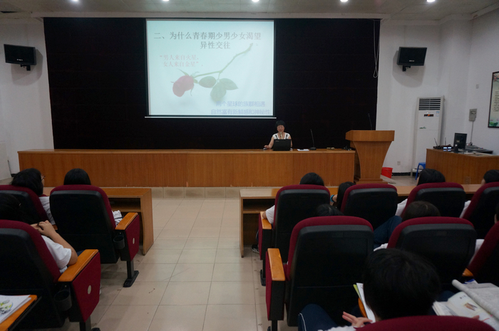 之后郑老师从高中生普遍的早恋问题开始分析,告诉女同学们恋爱是什么?恋爱是高中生常见的问题,而它的危害有哪些呢,郑老师也一一为我们解答。郑老师警戒女生们一定要谨慎并为她们提供了建议,以便女生在以后的日子中,保护好自己。在年轻的时候,总有些轻狂与天真,让那些坏人有机可趁,郑老师让女生们牢记,没有哪个坏人会告诉别人自己是坏人的。青春只有一次,所以女生要好好地保护自己,郑老师还告诉女生若遇到危险该如何防御。现场的女生们听得十分认真,对于自己的身边及个人的危机意识也想必增强了不少。