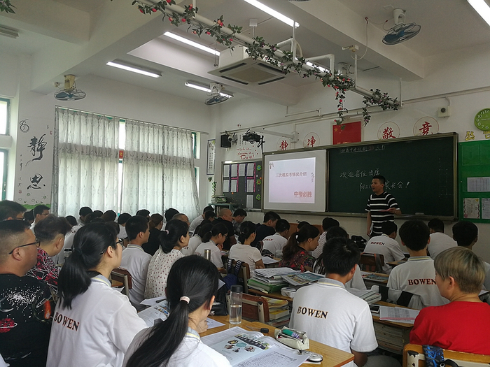 随后为增进家校之间的沟通和交流,促进家校的互动与协作,达到学校、家庭、教师形成合力,共同促进学生积极迎考的目的。在各班举行了中考30天冲刺的备考指导的家长会,全体班主任就后期的家庭教育作了一个总体指导,对家长提出一些要求:要求家长们以学生中考为家庭大事,全面关心、爱护学生,充分了解学生的思想动态,及时与老师沟通,注意教育方式方法,多做积极引导,要相信每个孩子都有巨大的潜力。