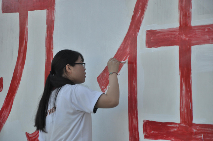 5月18日——28日,博文高中部志愿者以“保护自身,辛勤劳动,奉献自我,美化校园”为主旨,利用课余时间美化校园,粉刷运动场的一面墙壁。在志愿者社长李懿龙的带领下,志愿者每8人一组分工合作。活动前,志愿者们买来粉刷楼宇护栏所需要的环保油漆、小桶、滚筒、钢刷等工具,为活动开展做好充分准备。在活动中,他们发扬不怕苦、不怕累、不怕脏的精神,不惧油漆刺鼻的味道,分工合作,互相鼓劲,乐在其中。志愿者们干的热火朝天,为校园环境作无私的奉献。他们用自己的双手为校园带来了一份洁净,他们劳动的身影为校园环境增添了一份美丽!