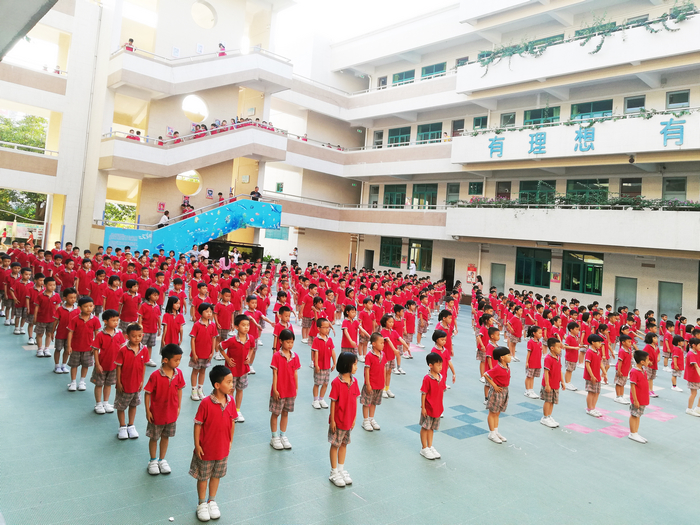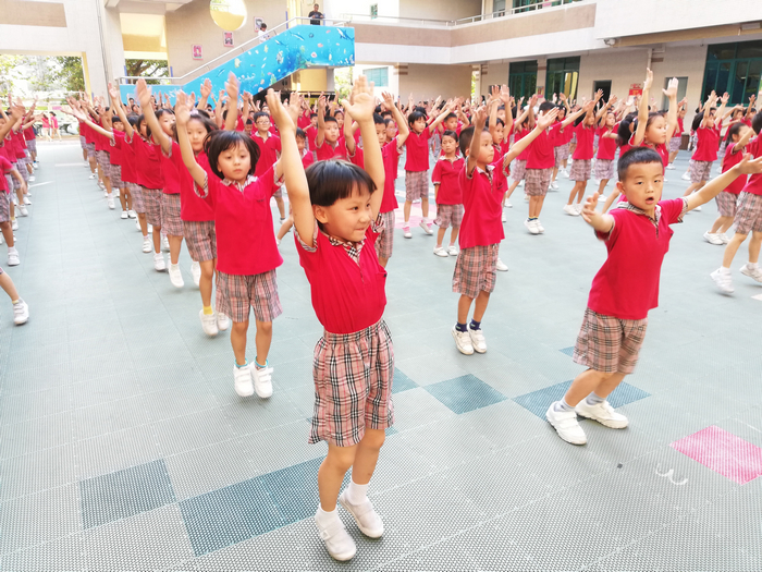 为响应落实学校“博文博雅,至正至健”的校训,进一步增强同学们的体质,提高广播体操的动作质量,展现当代学生的阳光活力, 5月29日下午,广东博文学校小学部一年级学生在小操场进行了广播操比赛。