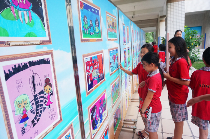 广东博文学校秉承“博文博雅,至正至健”的校训,“让学生养成对艺术的爱好和有一种艺术特长陪伴终身”的核心素养,全方面培养学生的美术特长,扎实开展素养教育。在六一国际儿童节到来之际,广东博文学校小学部举行了“欢庆六一博文学校小学部美术作品展”活动。展出的美术作品是经过专业美术老师精心筹划和准备后,从学生上交的众多作品中挑出优秀的作品,这些绘画作品色彩鲜艳,富有童真、童趣。