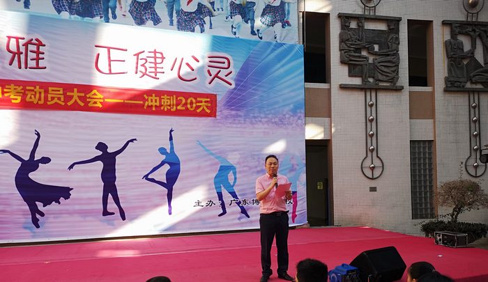 5月30日,广东博文学校星星舞台正在进行一项庄严而热烈的活动“初二年级地生中考动员大会——冲刺20天”。活动由余甜主任主持,各班班主任、地理生物科任教师及全体初二年级同学参加此次动员大会。