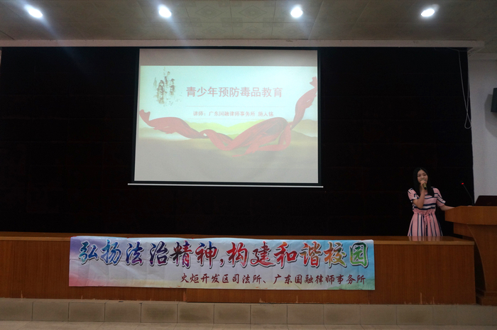 为营造和谐温馨的校园环境,增强广大师生抵制毒品的意识,提高自我保护能力,6月20日,中山市火炬开发区司法所和广东国融律师事务所联合展开校园普法活动,深入广东博文学校进行校园毒品预防教育宣传,进一步提升博文学生识别、防范、抵制毒品尤其是新型合成毒品的意识和能力。