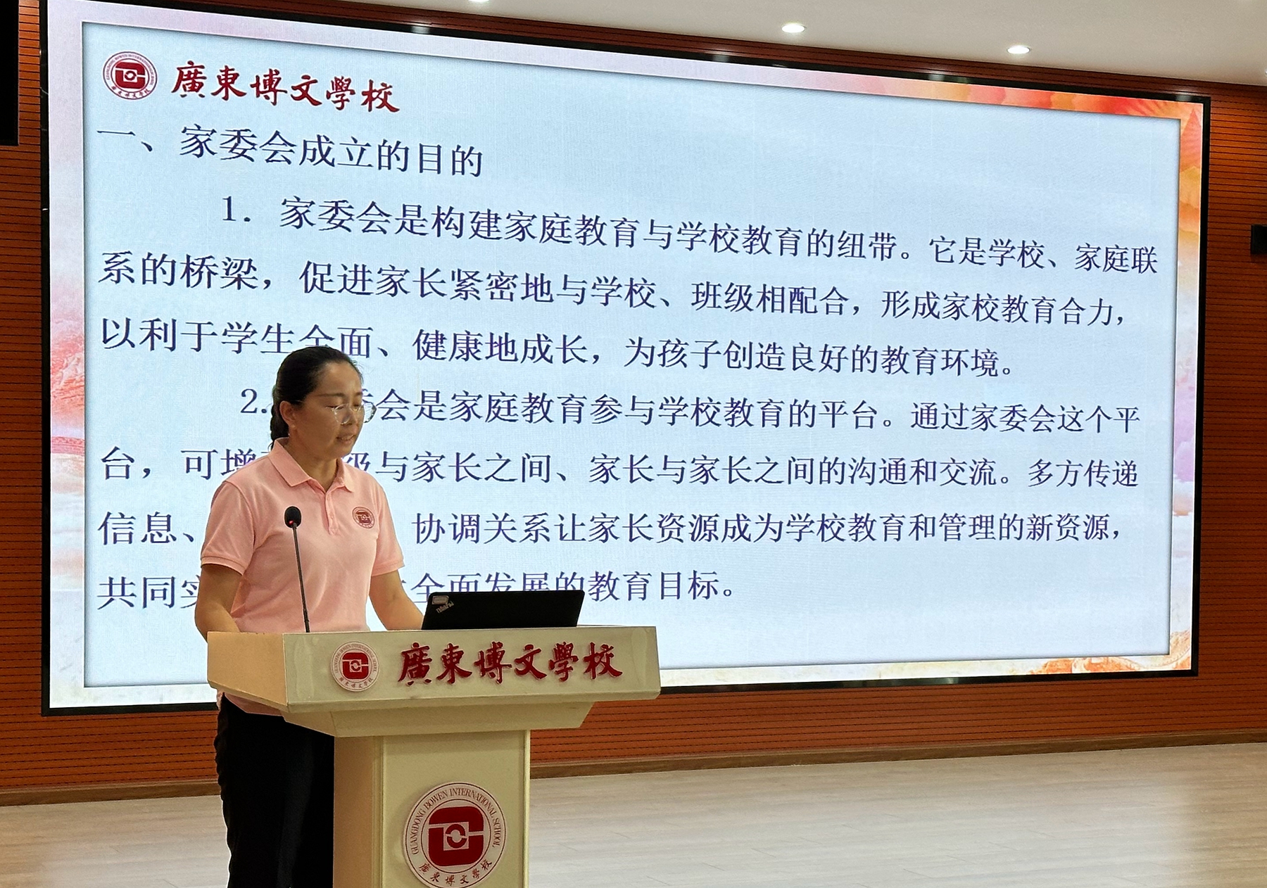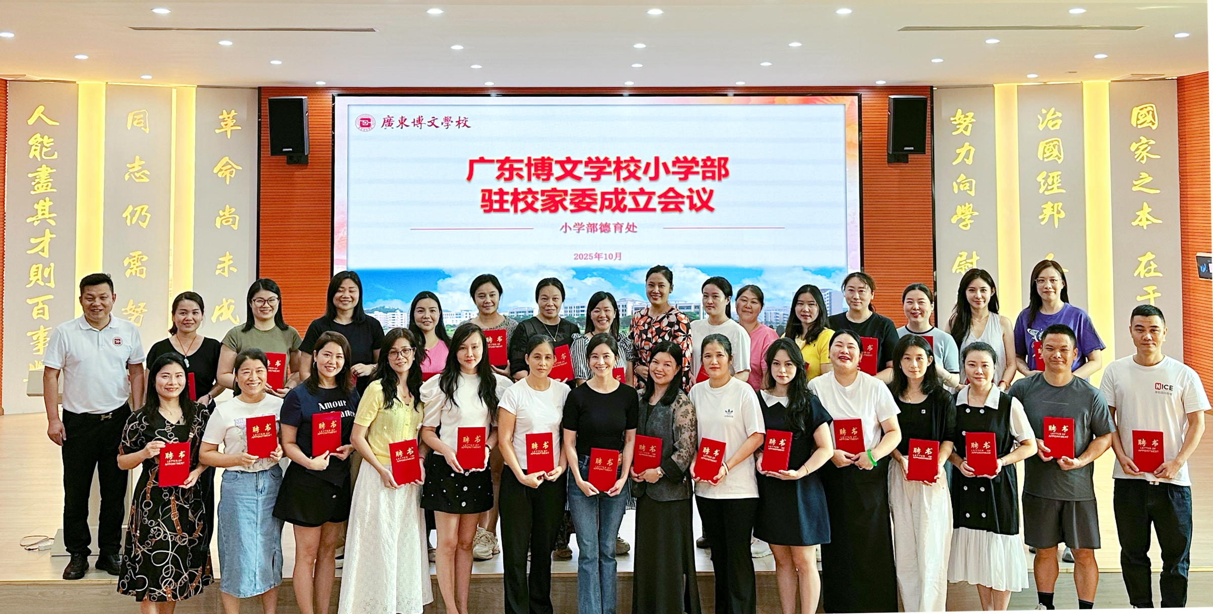 为持续发挥家长在学校教育中的协同作用,完善学校、家庭、社会一体的育人体系,近日,广东博文学校小学部以“家校共育项目”为载体,在综合楼401室隆重举行“第二届广东博文父母学校成立大会”。小学部校长徐曙、德育主任徐春艳、各年级组长及推选的新一届父母学校代表悉数出席,共同见证家校共育踏上2.0新征程。