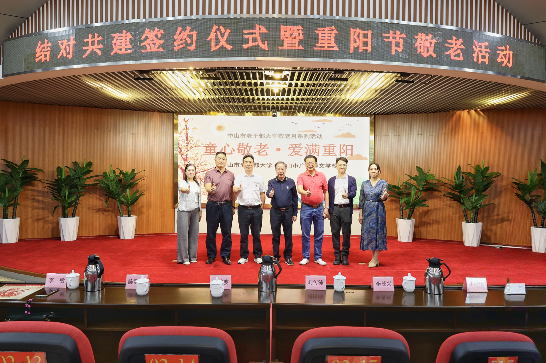 重阳敬老,德润童心。为传承中华民族尊老敬贤的传统美德,践行社会主义核心价值观,充分发挥党建带团、队建的组织优势,10月28日下午,在广东博文学校党支部书记李敏的带领下,党支部副书记覃少华,学校教师发展中心主任、德育总监李茂兴,以及由党员教师引导的少先队员、共青团员代表一行,前往中山市老干部大学开展“童心敬老,爱满重阳”结对共建签约仪式暨主题党日实践活动。本次活动以党建为引领,融合队建、团建内容,实现组织联动、情感共育,为全体参与师生上了一堂生动的思政实践课。