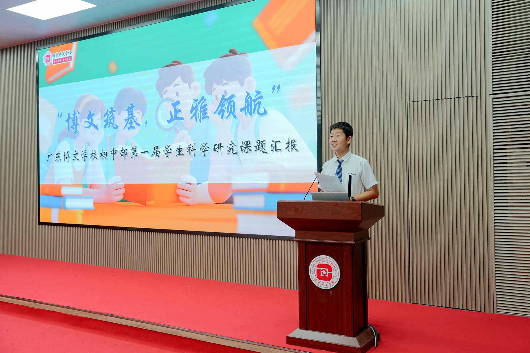 近日,广东博文学校初中部成功举办首届学生科学研究课题成果汇报活动。本次活动以“博文筑基 正雅领航”为主题,生动诠释了学校“正雅”教育的核心理念,呼应了“让学生养成对科学的兴趣和具有创新能力陪伴终身”这一育人目标。活动不仅充分展示了学子们在科学探究中的风采,更彰显了学校扎实推进素质教育、积极践行STEAM教育的坚定决心。