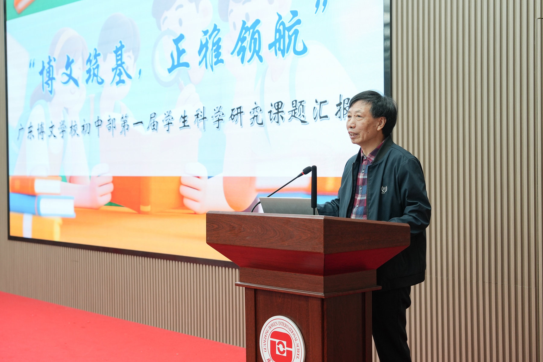 学校总校长张海经、副校长孙德新、学校顾问陈春艳及学术委员会等领导到场指导,初二年级全体师生、家长及课题指导教师共同参与。初中部教务主任余甜在致辞中鼓励学生积极探究、联系实际,提升综合素养。