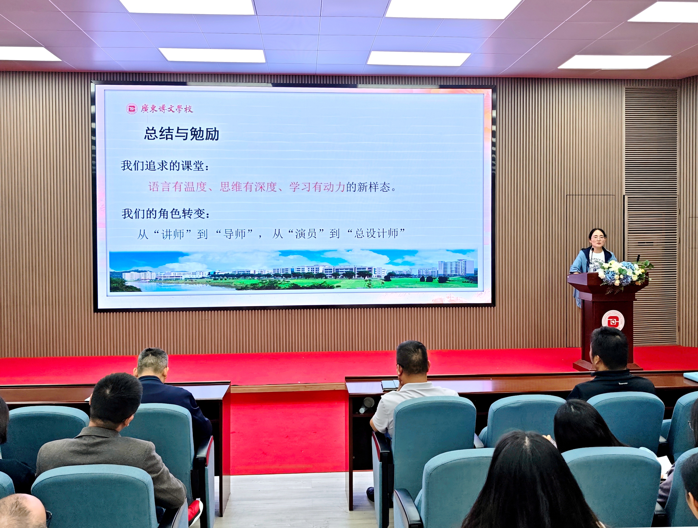 培训结尾,初中部覃少华校长以初一两位新生的显著转变为例,深情寄语全体教师:要“看见”并关爱每一位学生,常怀“我是这孩子,这是我孩子”之思,真正做到视生如子。同时,他再次强调了“讲懂练透”的重要性,要求各备课组深入研讨高效课堂的组织与管理,让其成为初中部常态的风景与靓丽的名片。