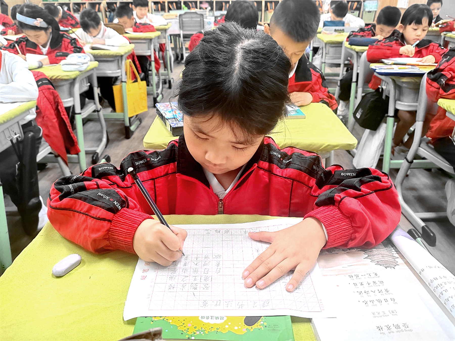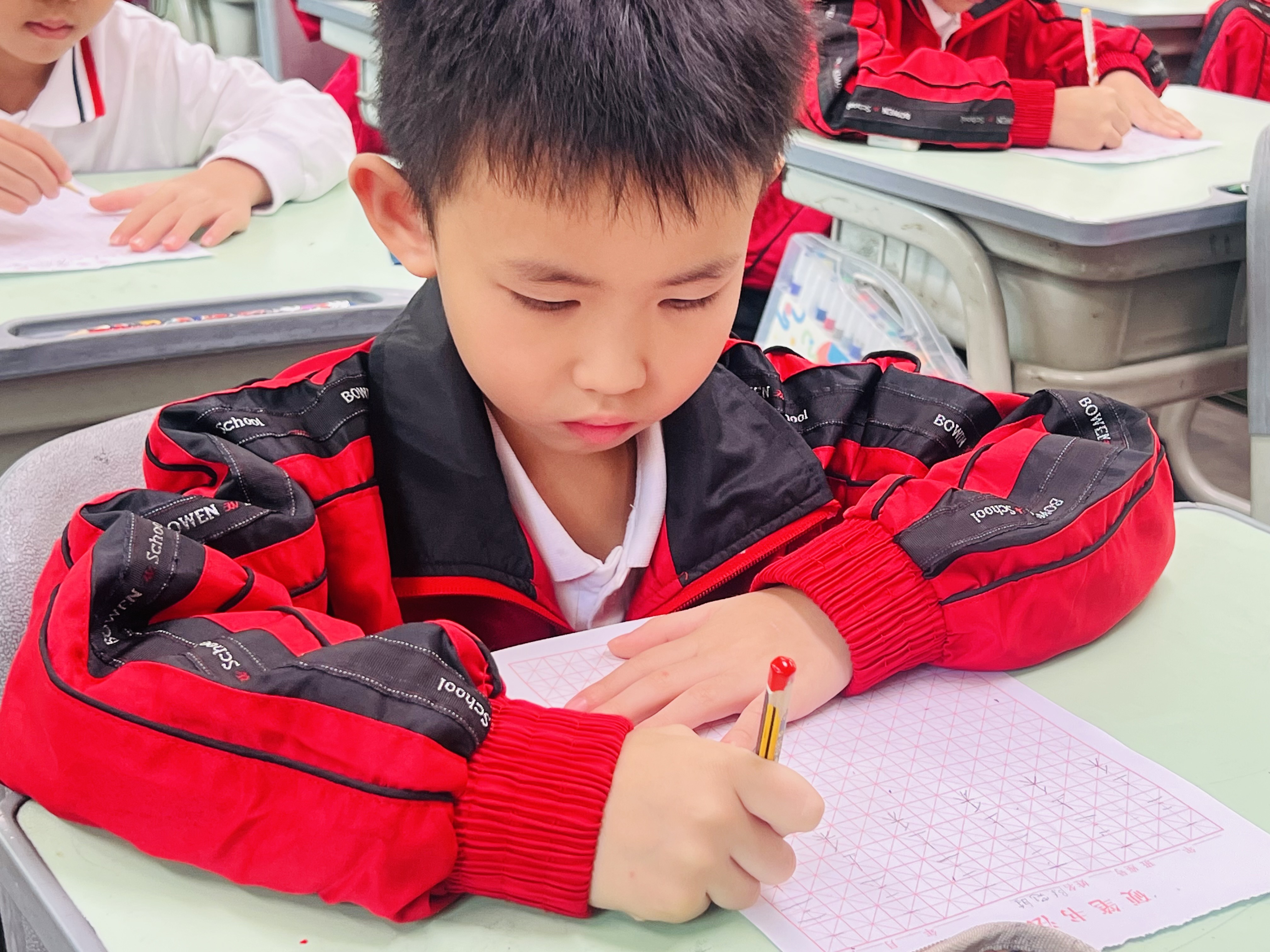 近日,广东博文学校小学部“博文杯”硬笔字书写比赛圆满结束。全体同学以笔为媒,在横竖撇捺间传递真情实感,既有经典文脉的传承,也有赤子情怀的抒发,校园内笔墨飘香、书香氤氲。其中五、六年级创新推行的“全员展示+红花投票”评价模式,让书法评选更具互动性与公正性,成为本次比赛的一大亮点。