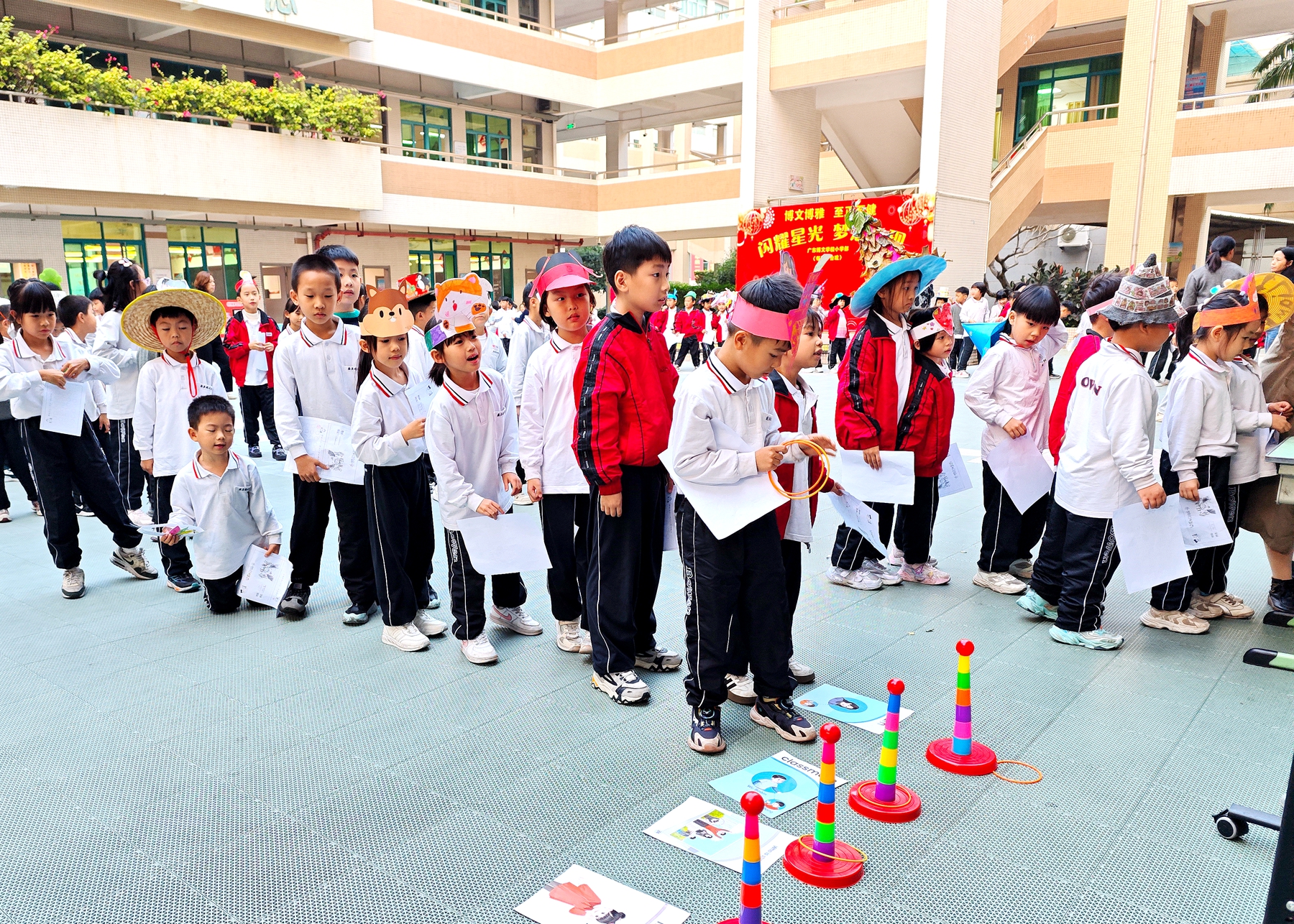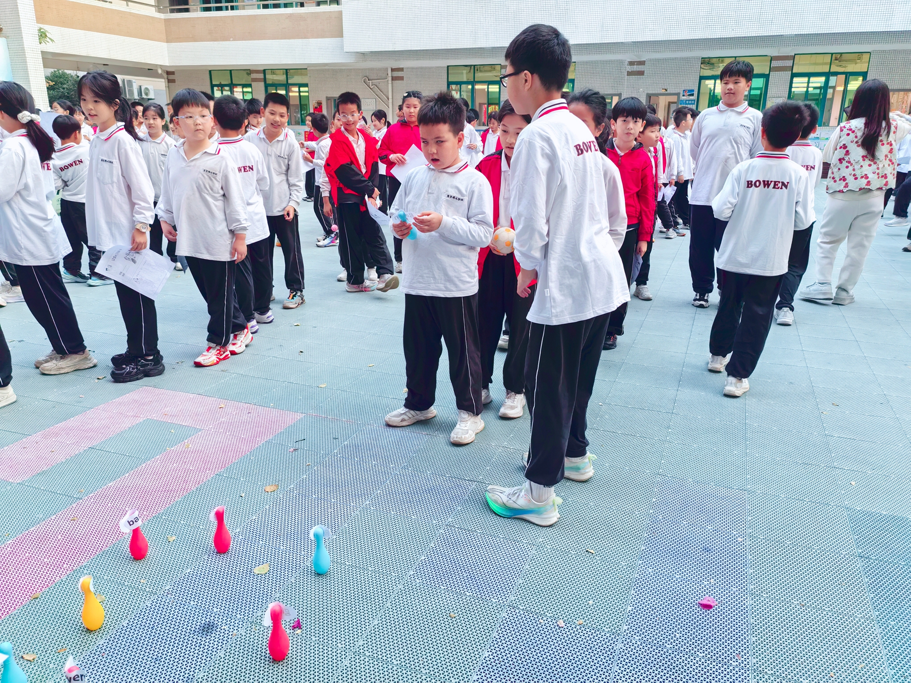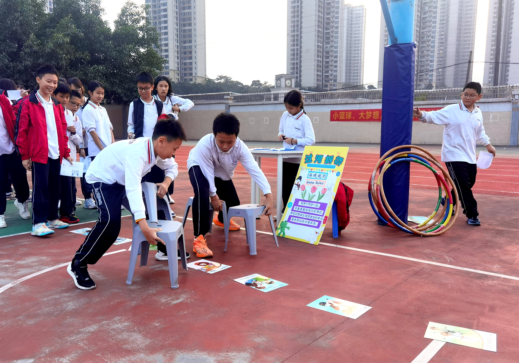 操场秒变“英语欢乐场”:你说我猜考验默契、过河拆桥比拼反应、小球吹吹乐趣味十足,还有句型迷宫、实物套圈答英文……孩子们攒印章、兑奖品,欢声笑语里满是收获,连离场时都直呼“还没玩够”!