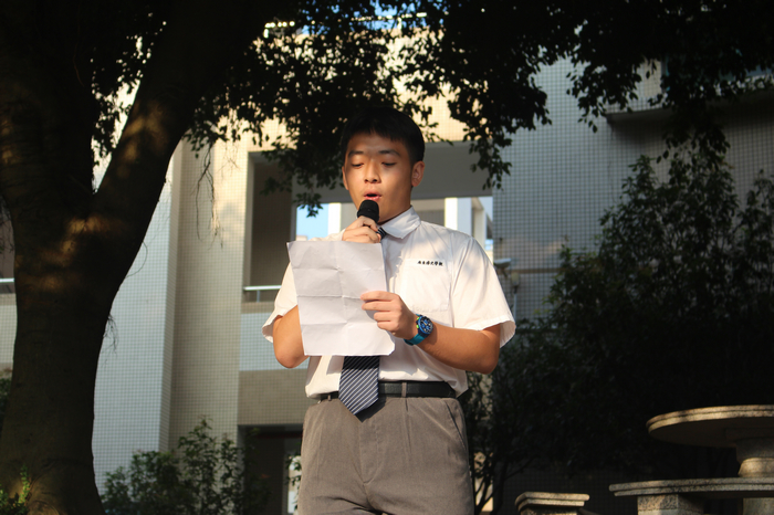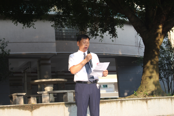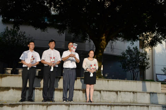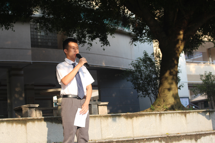 本次升旗仪式由高二(7)班钟明峰同学主持,伴随着庄严的国歌声,五星红旗缓缓升起,全体师生肃立行注目礼。接着,校团委书记胡建辉以《尊师重道,争做文明学生》为题进行国旗下讲话。胡老师强调:教师是辛勤的园丁,今天我们共同庆祝教师节,不仅是为了向广大教师和教育工作者表达最美好的祝愿,更是为了唤起同学们对教育的重视和对教师的尊重。尊师重道,不仅仅是一句响亮的口号,而是每一位同学从身边做起,从点滴做起,发自内心的对教师的尊重之情。接着,博文高中学生会主席刘逸代表全体学生表达对教师的祝福。