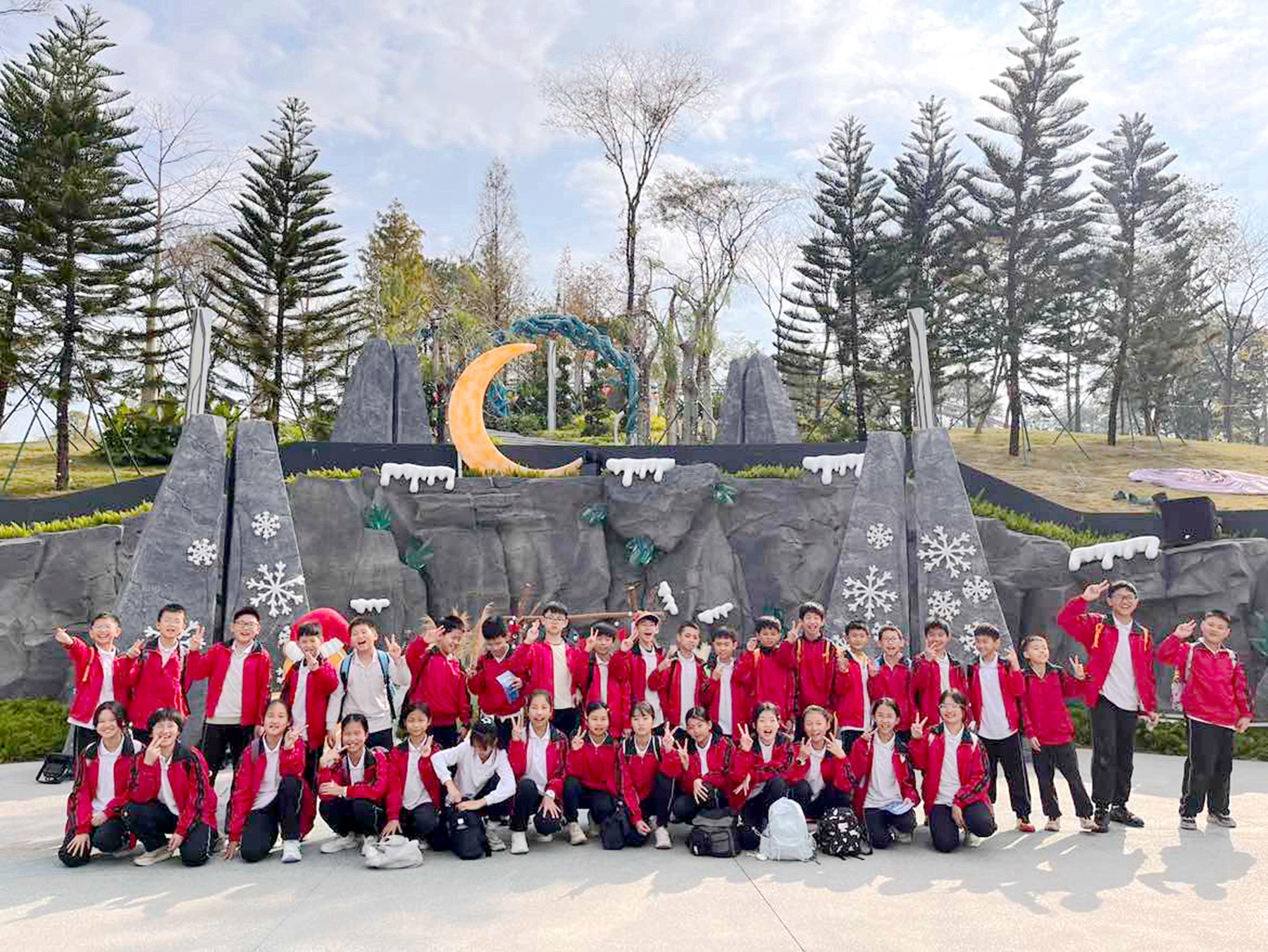 高年级的研学之旅以“科技探索”为核心。在中山板芙里溪村红色教育基地,同学们走进村史博物馆与党史博物馆,透过老照片、影像资料触摸“里溪改革精神”,红色基因在心中悄然扎根。随后抵达广州星纪世界南湖乐园,VR体验、光子奇航、重力训练场等18项科技项目让学生们大呼过瘾,物理秀、魔术表演等互动环节更将科学原理化作趣味体验,大家在亲手操作、亲眼见证中,点燃了对前沿科技的探索热情,也加深了对科技改变生活的理解。