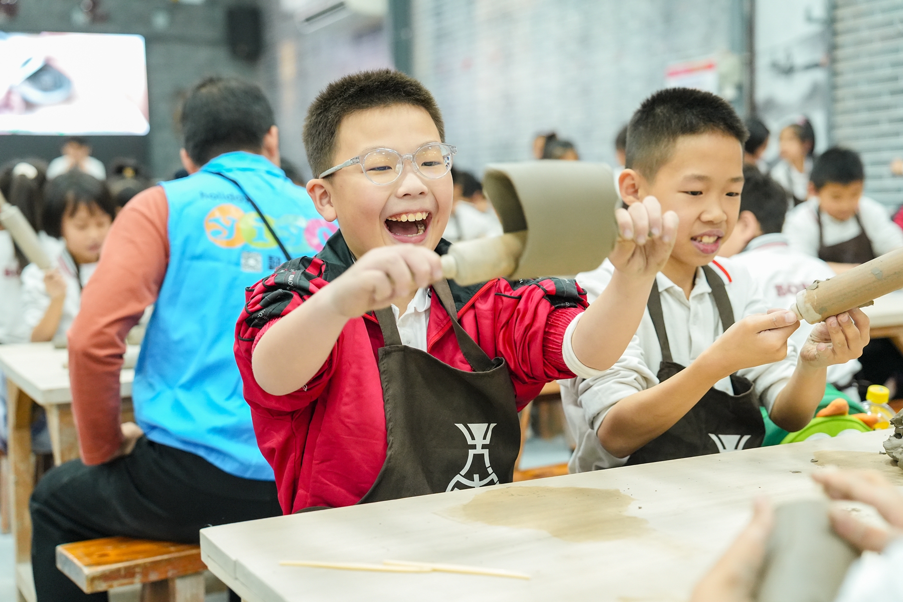 低年级的研学则各有特色:一年级与三年级的同学们走进中山市博物馆,在六千年前的石器、岭南特色的彩陶间穿梭,聆听中山历史的回响,在与文物“对话”的过程中,乡土文化认知不断深化;移步大盛陶艺,同学们跟着匠人学习陶艺制作,揉泥、拉坯、塑型,感受泥土的生命力,手工沙画课程更让大家以沙为墨、以手为笔,将创意化作灵动画面,非遗文化的魅力在指尖流转。