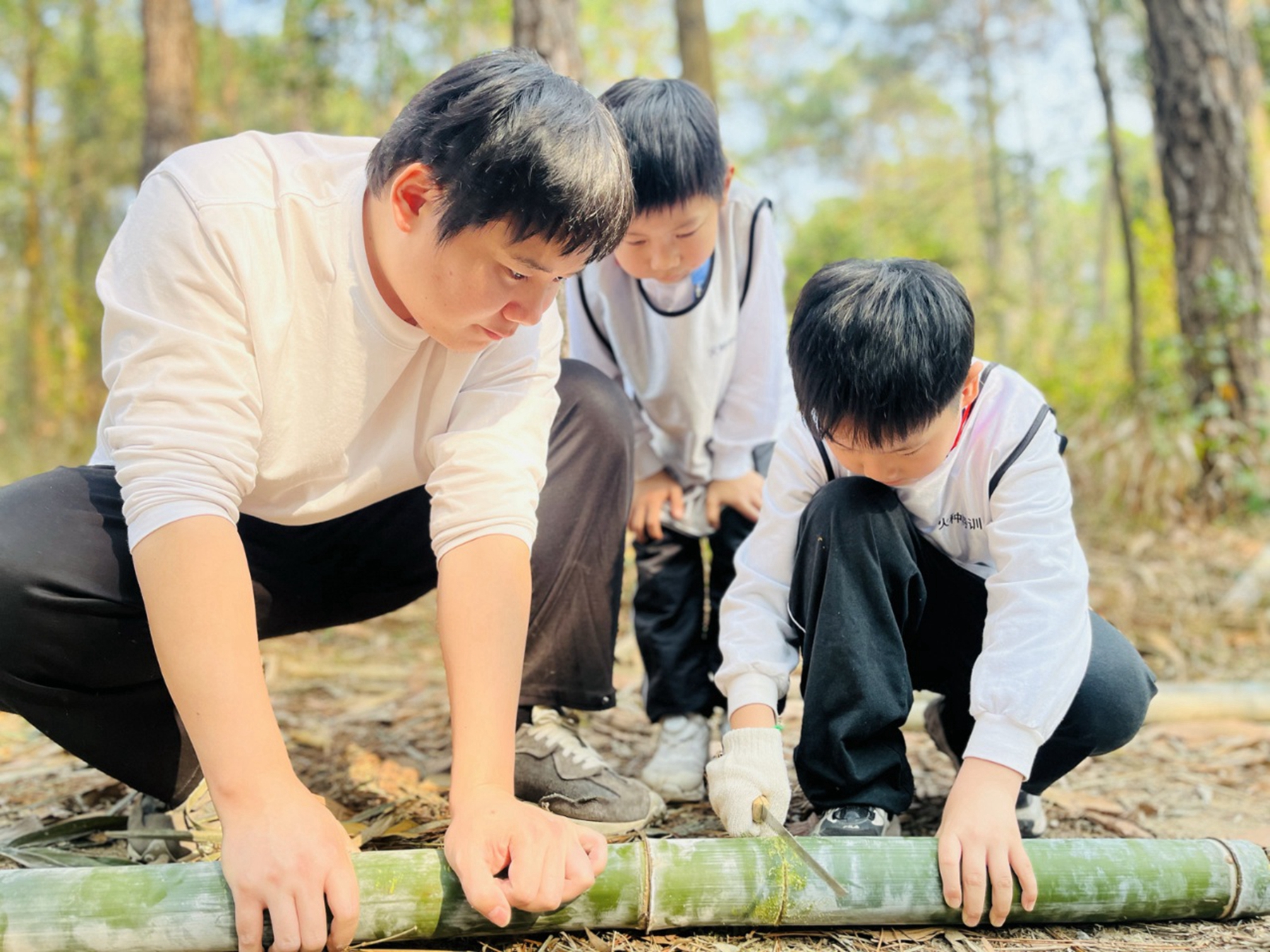 二年级的同学则在中山逸乡居开启了一场自然实践课。竹林探秘中,大家触摸竹节纹理、合作锯竹取材,认识自然万物的特性;竹筒饭制作、趣味钓螃蟹让孩子们体验劳动的乐趣,皮划艇体验更是锻炼了勇气与协作力。围坐分享劳动成果时,一张张笑脸洋溢着收获的喜悦,在自然中亲身体验,让孩子们懂得了合作的意义与劳动的价值。