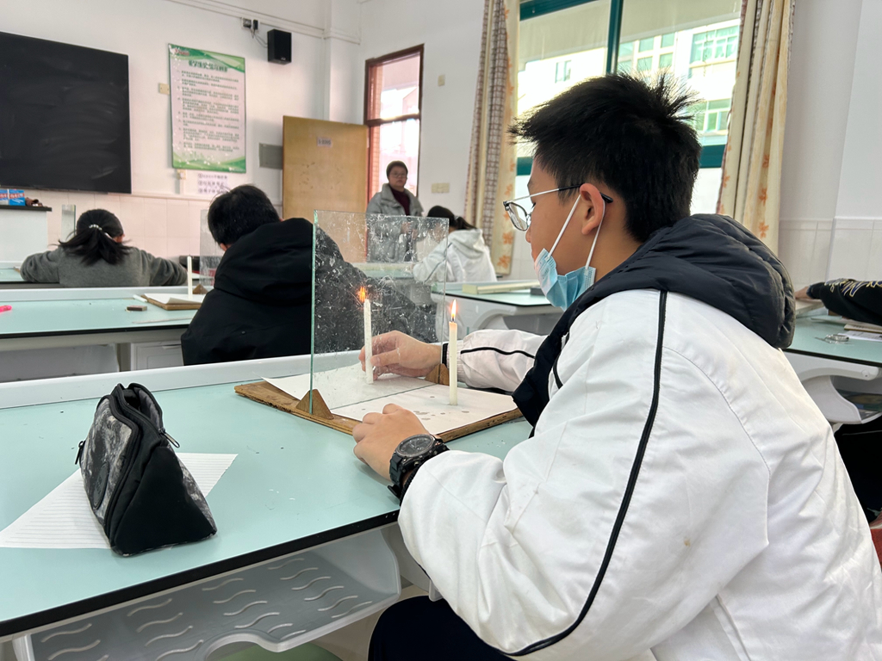 赛场上,同学们迅速进入状态。他们认真阅读实验任务单,或精准地测量物体的质量和体积,或细心调整斜面的高度研究运动规律,或耐心调整蜡烛位置研究平面镜成像的规律。每一个操作都有条不紊,每一组数据都详实记录,充分展现了扎实的实验技能和严谨的科学态度。评委老师穿梭在赛场中,依据操作规范性,数据真实性等维度进行客观公正的现场打分,最终评选出一、二、三等奖。