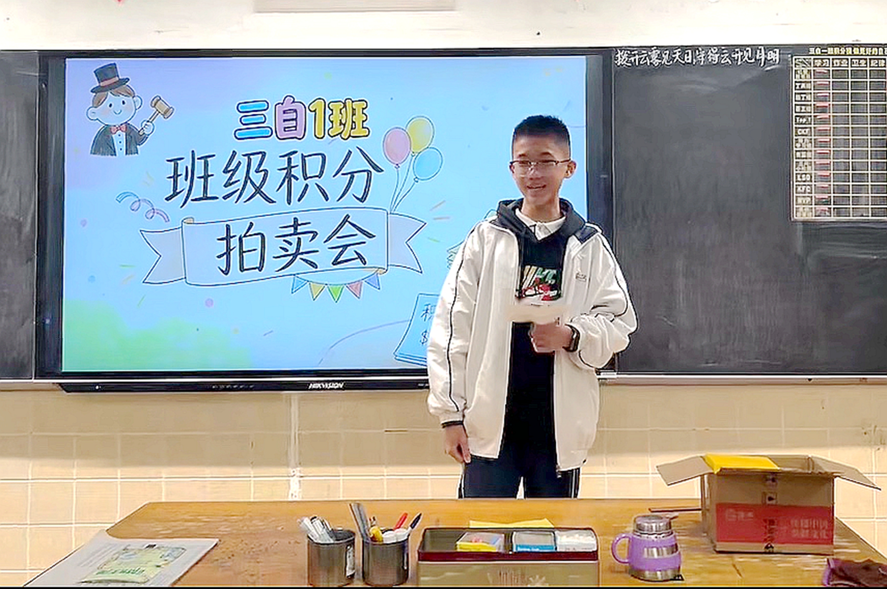 新年将至,暖意渐浓。为弘扬孝顺美德,培育感恩之心,广东博文学校初二年级“三自1班”近日举办了一场别开生面的新年孝顺主题拍卖会。这场拍卖会摒弃了金钱交易,以班级积分作为竞拍凭证,用一件件贴心好物搭建起同学们向父母表达爱意的桥梁。