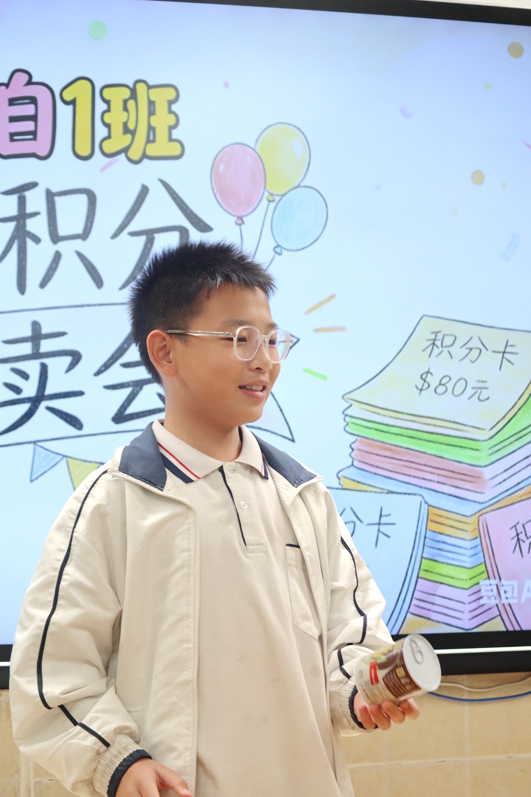 竞拍过程中,同学们热情高涨,凭借日常积累的班级积分积极出价。按照规则,所有拍品 1 分起拍,每次加价幅度一致,主持人喊出 “最后一次” 后无人加价即成交,成交后需核对积分、签字确认方可领取拍品。大家眼神坚定,举手果断,只为将心仪的孝心好物收入囊中,送给日夜操劳的父母。每当一件拍品成功拍出,现场便响起阵阵掌声,既是对竞拍成功者的祝贺,也是对这份孝心的肯定。