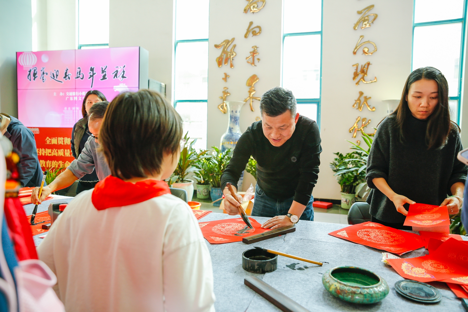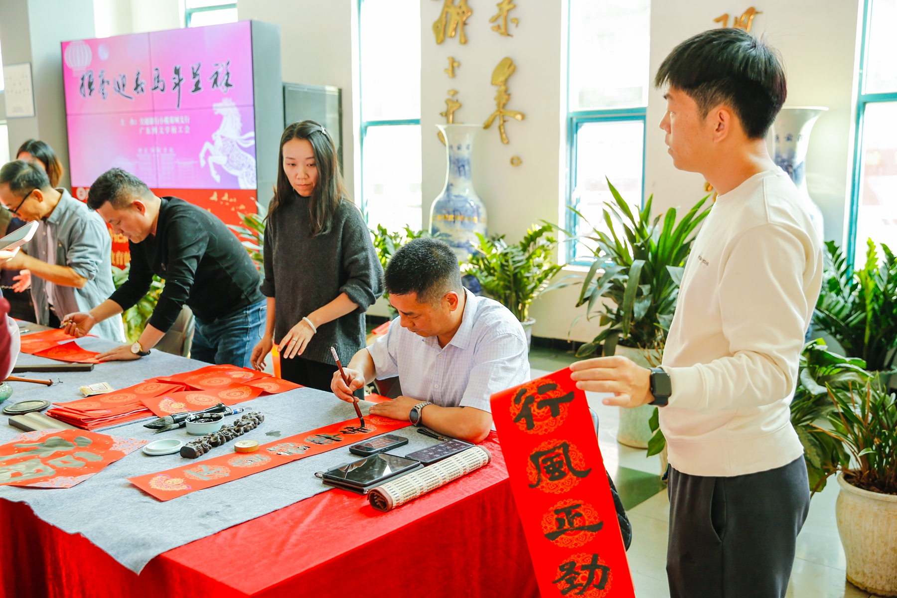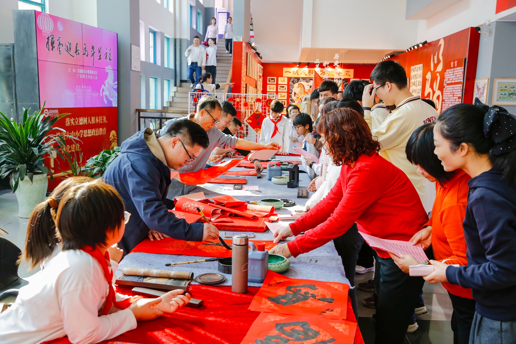 金笺送福,翰墨迎春。1月16日下午,广东博文学校综合楼大堂内暖意融融、墨香四溢,由学校工会精心组织的“迎新春 送对联”活动欢乐举行。