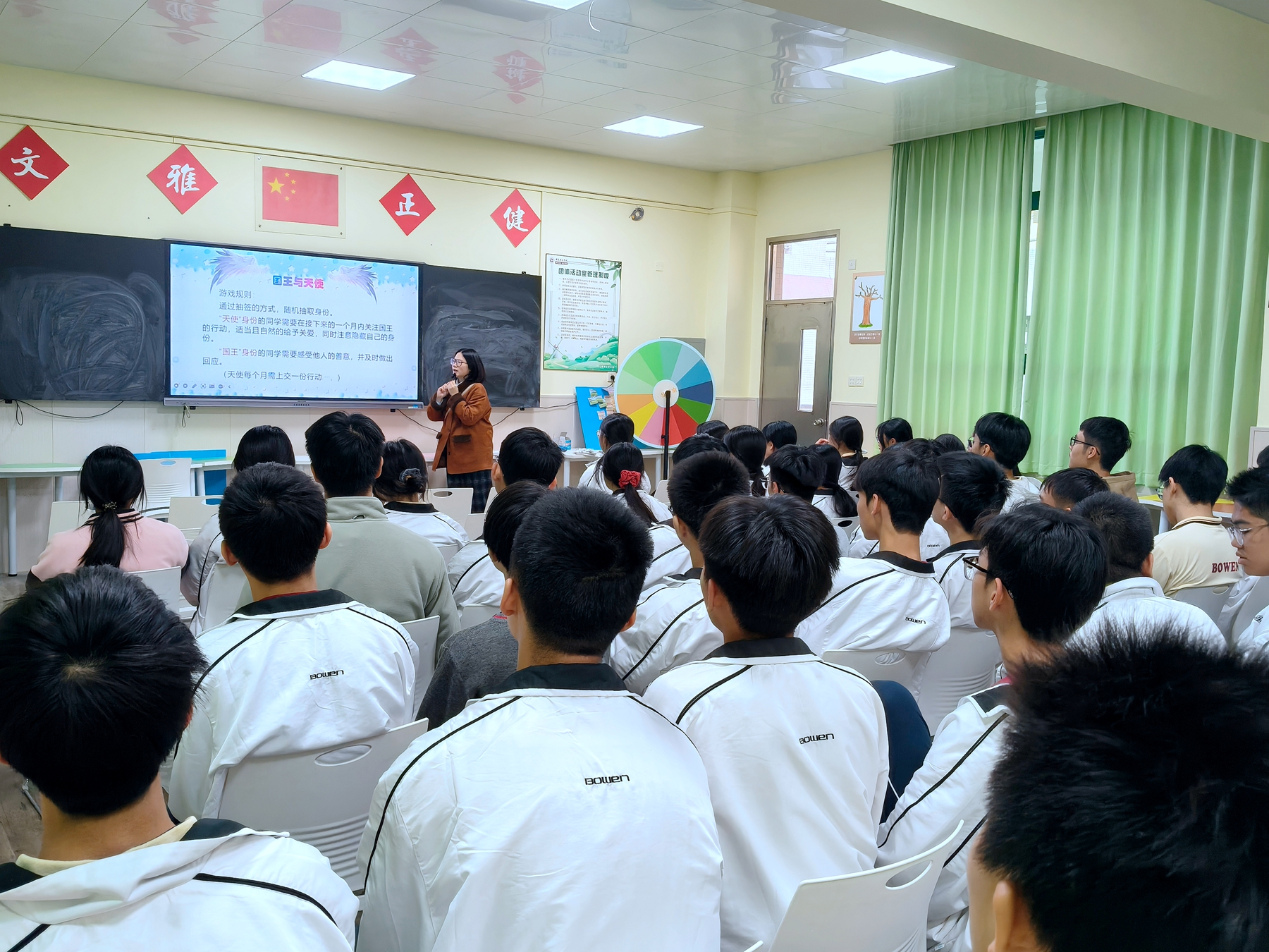 在活动启动现场,学校心理教师通过生动的讲解,向同学们详细阐释了“国王与天使”行动的规则:每位学生将以抽签的方式随机成为一名“国王”的“天使”,在接下来的一个月里,“天使”要默默关注自己的“国王”,适时给予温暖与支持,用细微的行动传递善意;而“国王”则在感受关怀的同时,也需学会感知他人的心意,在互动中体会人与人之间的联结。