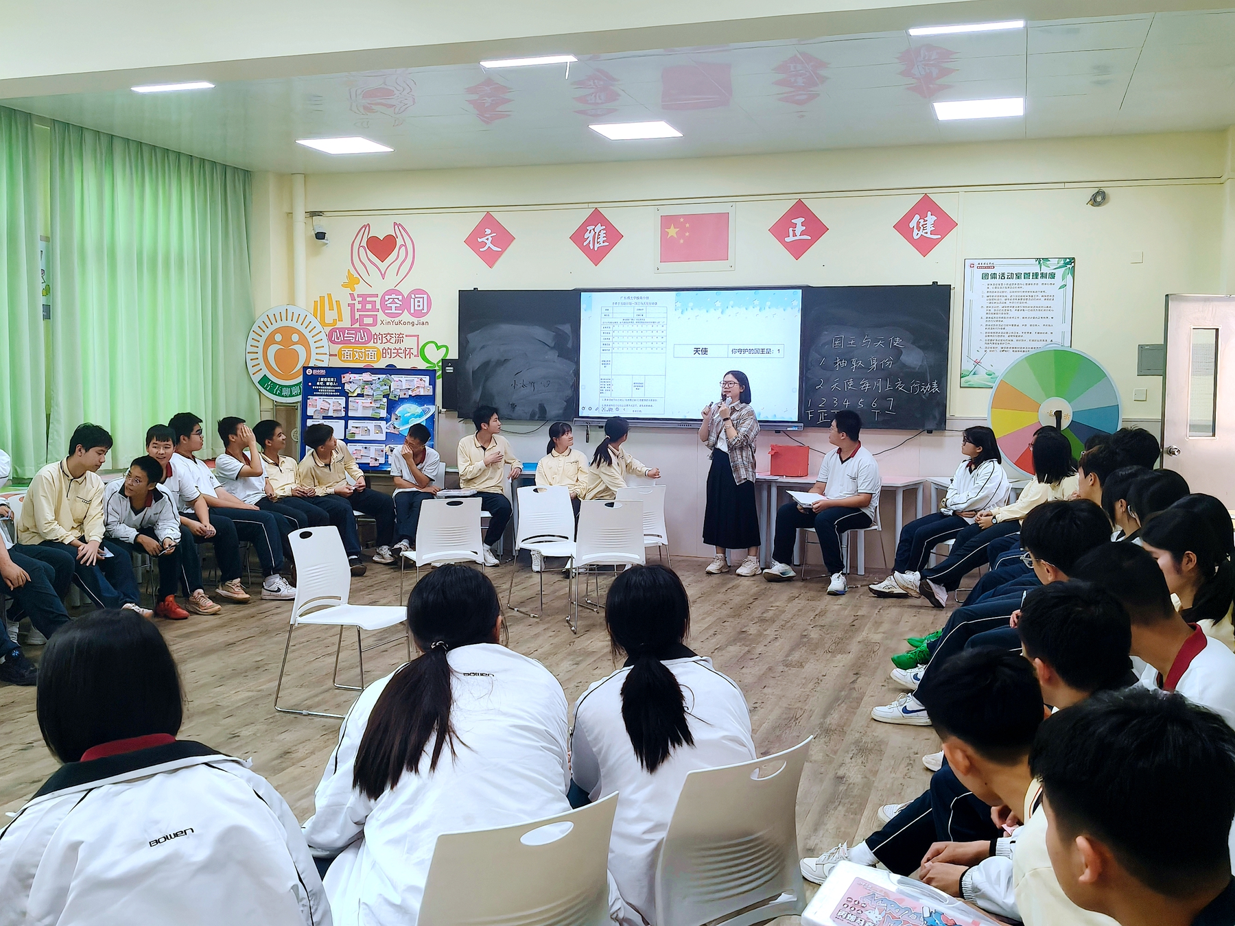 同学们认真聆听规则说明,眼神中满是期待与好奇。在后续的活动环节中,大家围坐交流,在轻松的氛围里开启了这场“神秘守护”之旅。有的同学悄悄记下“国王”的小喜好,有的同学规划着如何用贴心的举动为“国王”带来惊喜,校园里处处涌动着无声的关爱。