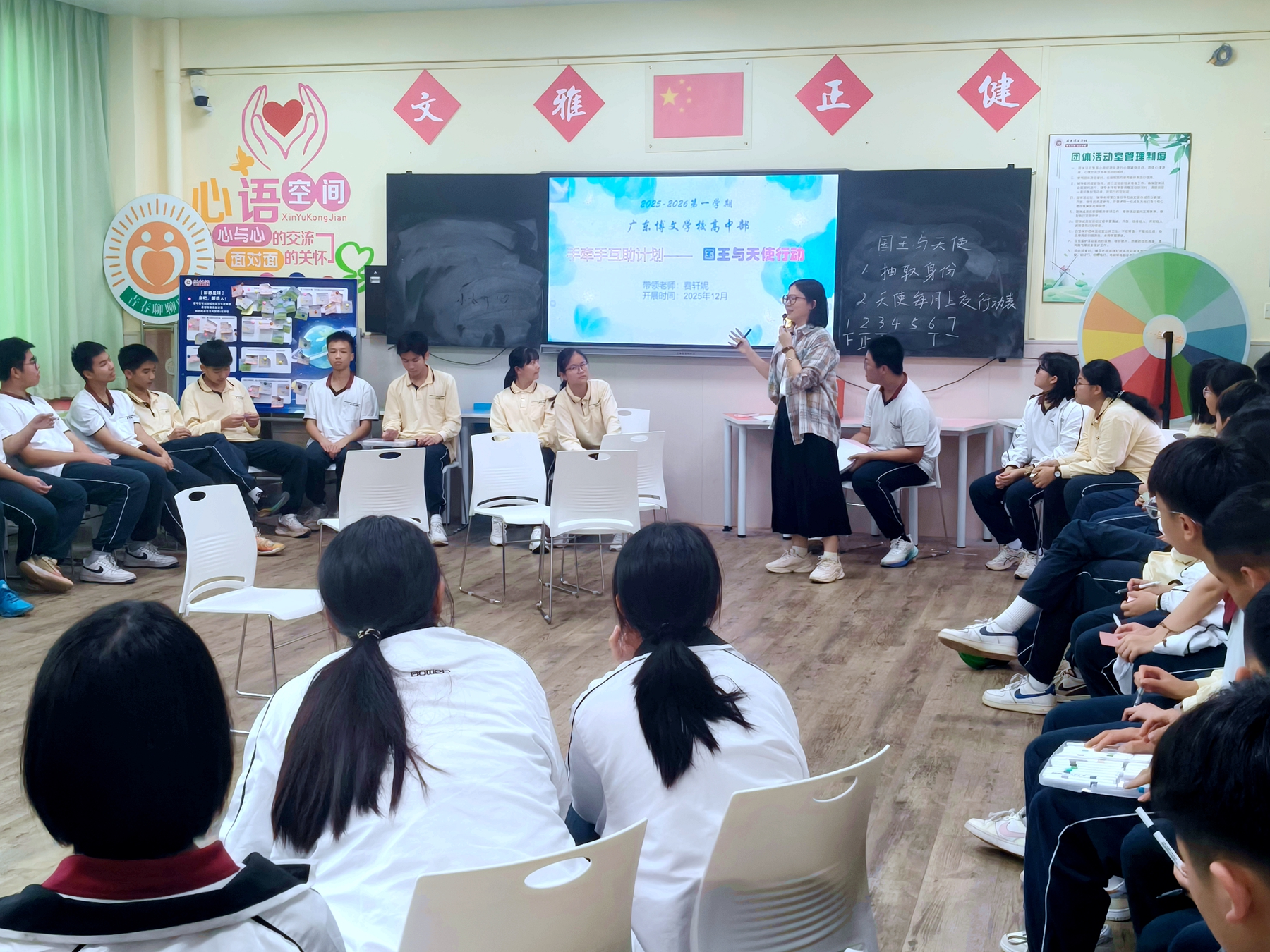 此次“国王与天使”行动,是广东博文学校高中部心理健康教育与校园文化建设的重要举措。通过沉浸式的互助体验,不仅让学生在日常中学会关注他人、表达善意,更在潜移默化中培养了共情能力与团队协作意识,让互助友爱的种子在校园里生根发芽。