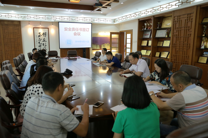 随后各学部校长、总务主任、饭堂负责人和学校校长签订2018-2019学年度安全责任书。而且为了迎接开发区“平安校园”的创建,汤勇校长详细解读了《火炬区创建“平安校园”评估指标体系》的细则要求,并将相关具体安全卫生工作分到各个部门,各部门各司其职,努力创建平安校园。