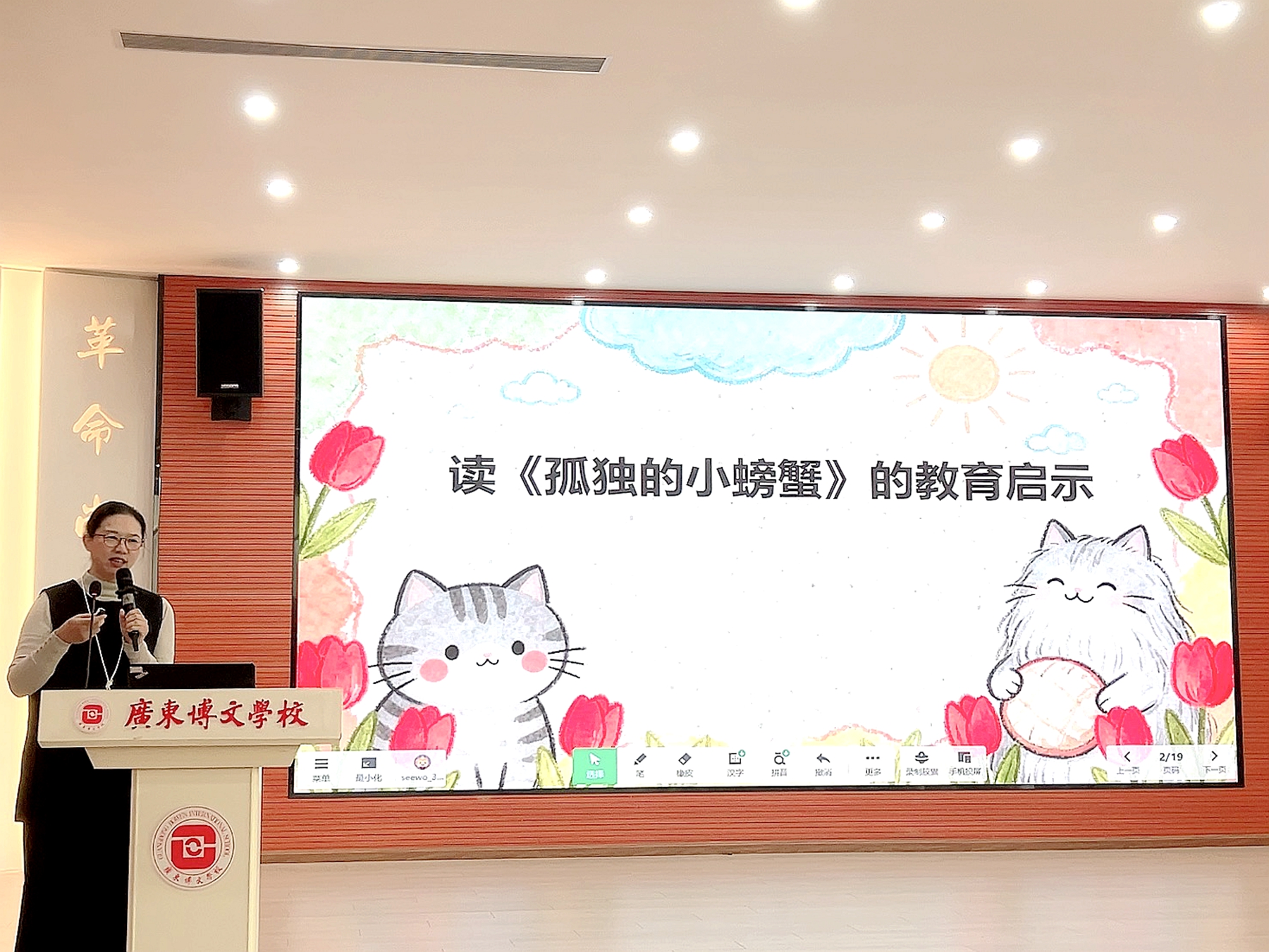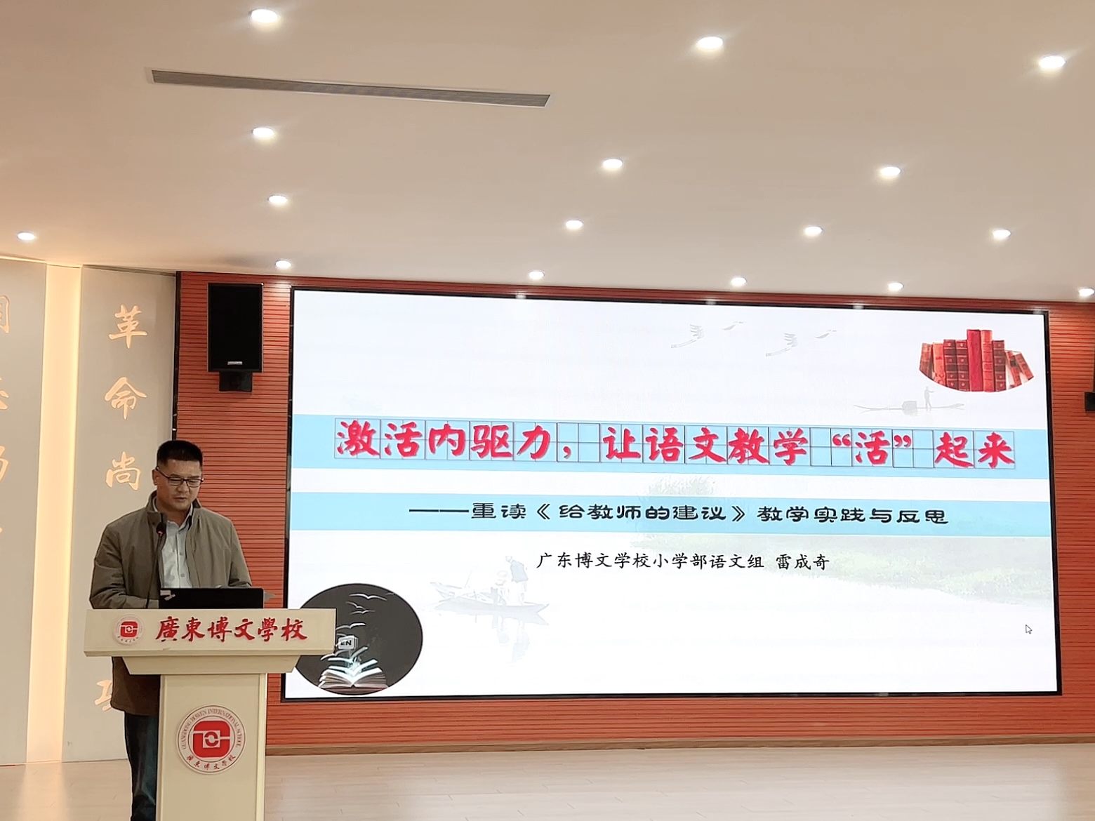 为厚植校园书香底蕴,助推教师专业成长,搭建跨学科交流平台,近日,广东博文学校小学部围绕“以书润心、以读促教”核心,开展教师读书分享系列活动。活动前期,全体教师踊跃撰写读书心得,学部组织专业评审遴选各学科优秀代表,随后语文、数学、英语、综合四大科组各具特色开展分享会,让思想在共读中碰撞,让智慧在交流中沉淀。