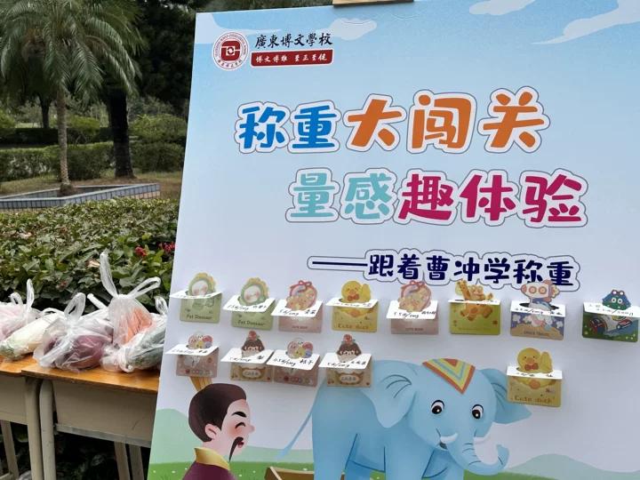 近日,广东博文学校小学部三、四年级以“曹冲称象”为灵感,开展“称重有道・量感共生”项目式学习活动,让学生在“做数学、玩数学、用数学”中穿越古今计量长河,筑牢质量观念,实现知识与能力的双重成长。