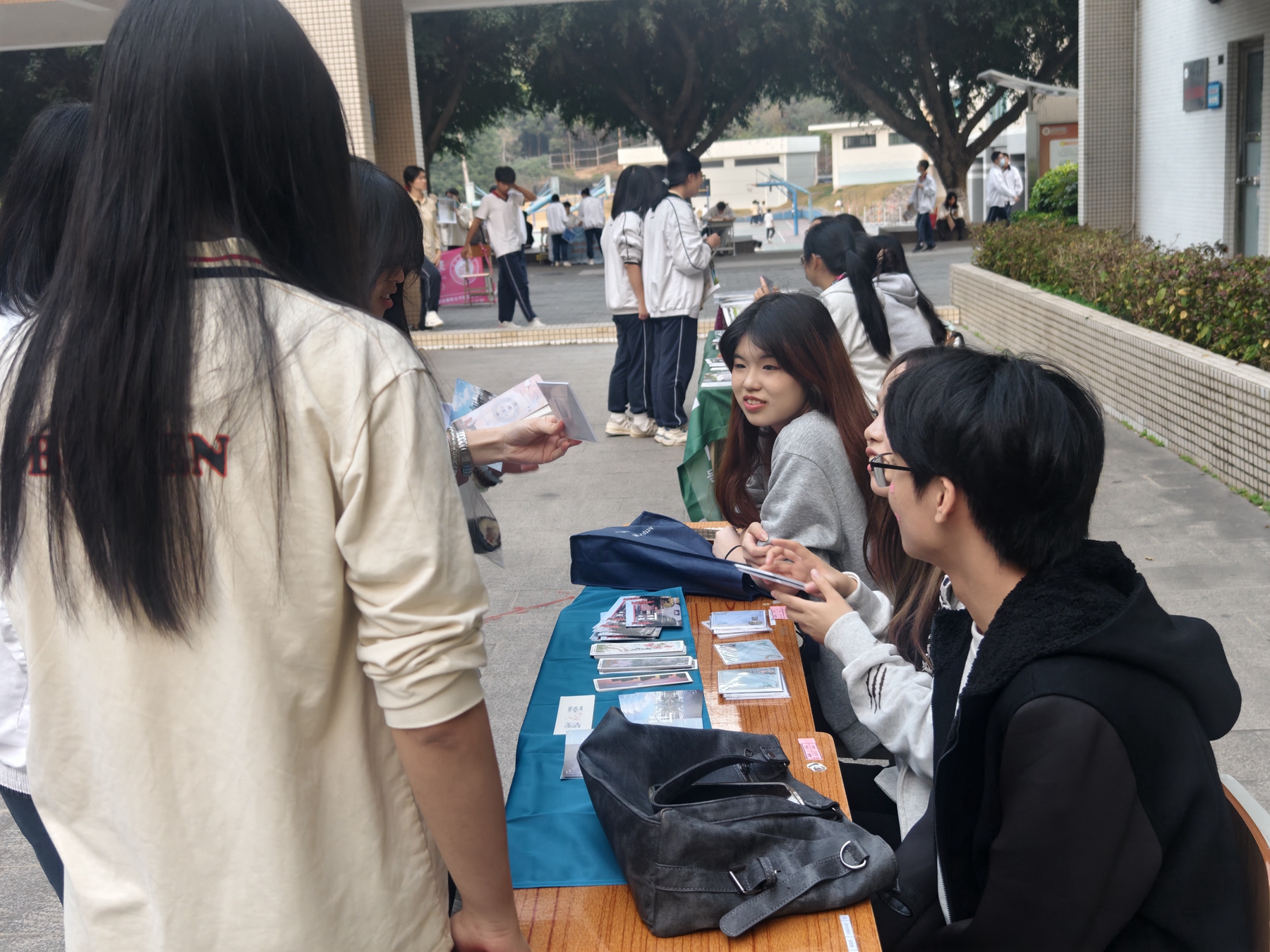 在宣讲会前,高校学长学姐团在校园内精心摆设摊位,准备了精美实用的高校文创。他们热情地为学弟学妹们答疑解惑,就高考备考、专业选择、大学生活适应等方面进行深入交流,学长学姐们的耐心解答让同学们受益匪浅。