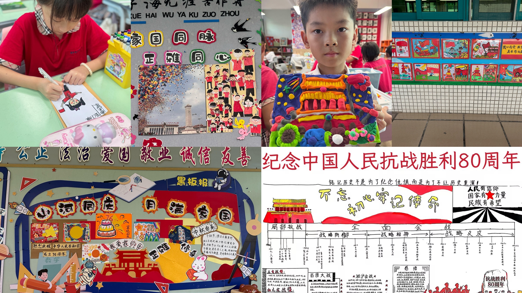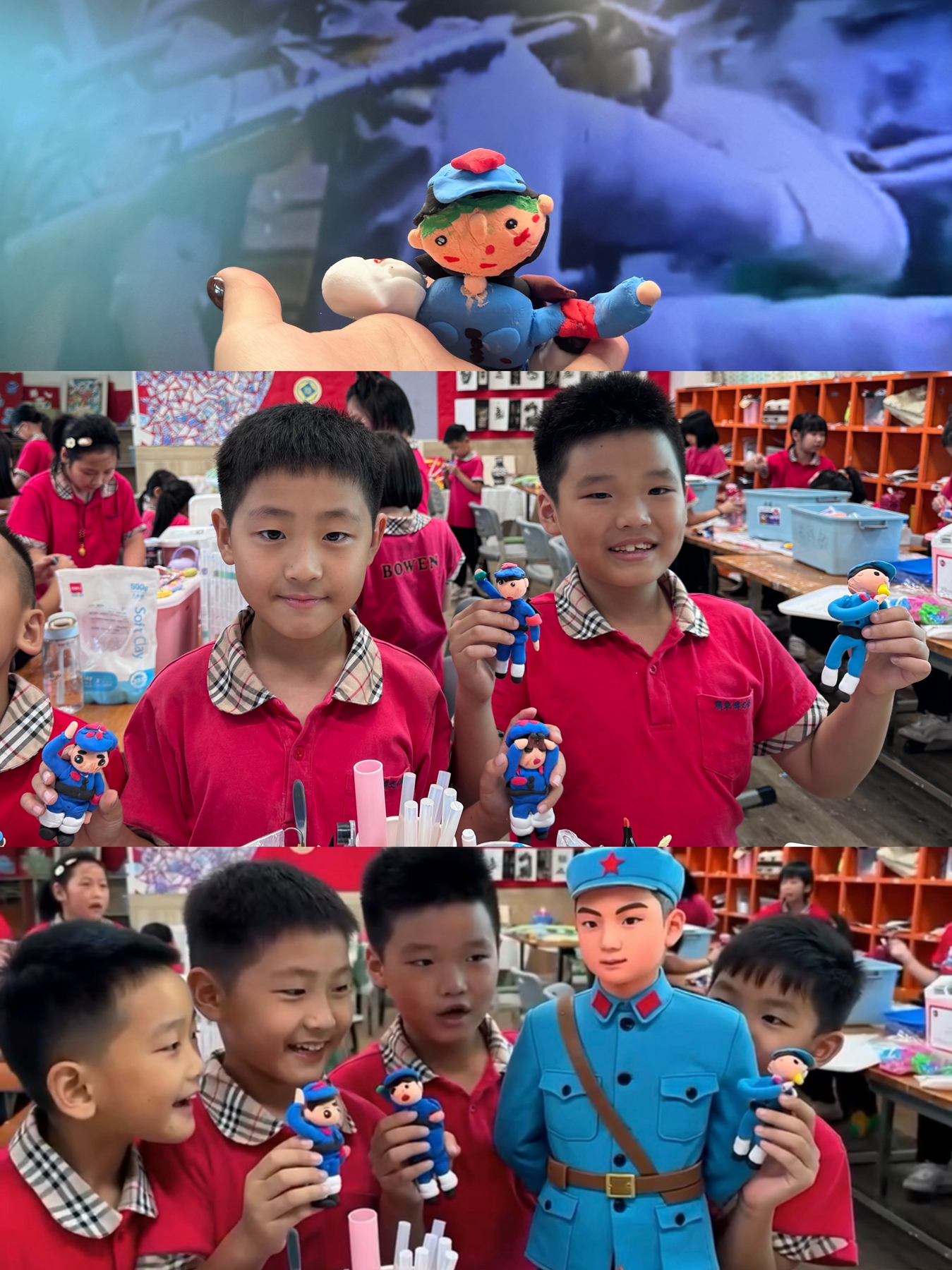 少先队深耕红色教育,将 “正雅德育” 与红色基因深度融合。开展爱国主义班会课,社团课以 AI 技术让学生与自制 “小红军” 粘土形象隔空对话,让革命历史可感可触。《薪火传千古,童画述长征》系列作品便是红色教育的结晶;在“诚信” 主题活动中,孩子们用黏土塑造 “不长长鼻子的匹诺曹”,深化 “立诚” 内涵。全体师生共观阅兵仪式、赏析《革命者》等红色电影,厚植家国情怀,让 “立德”“立品” 理念根植于心。