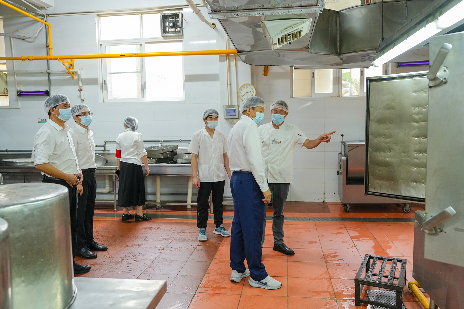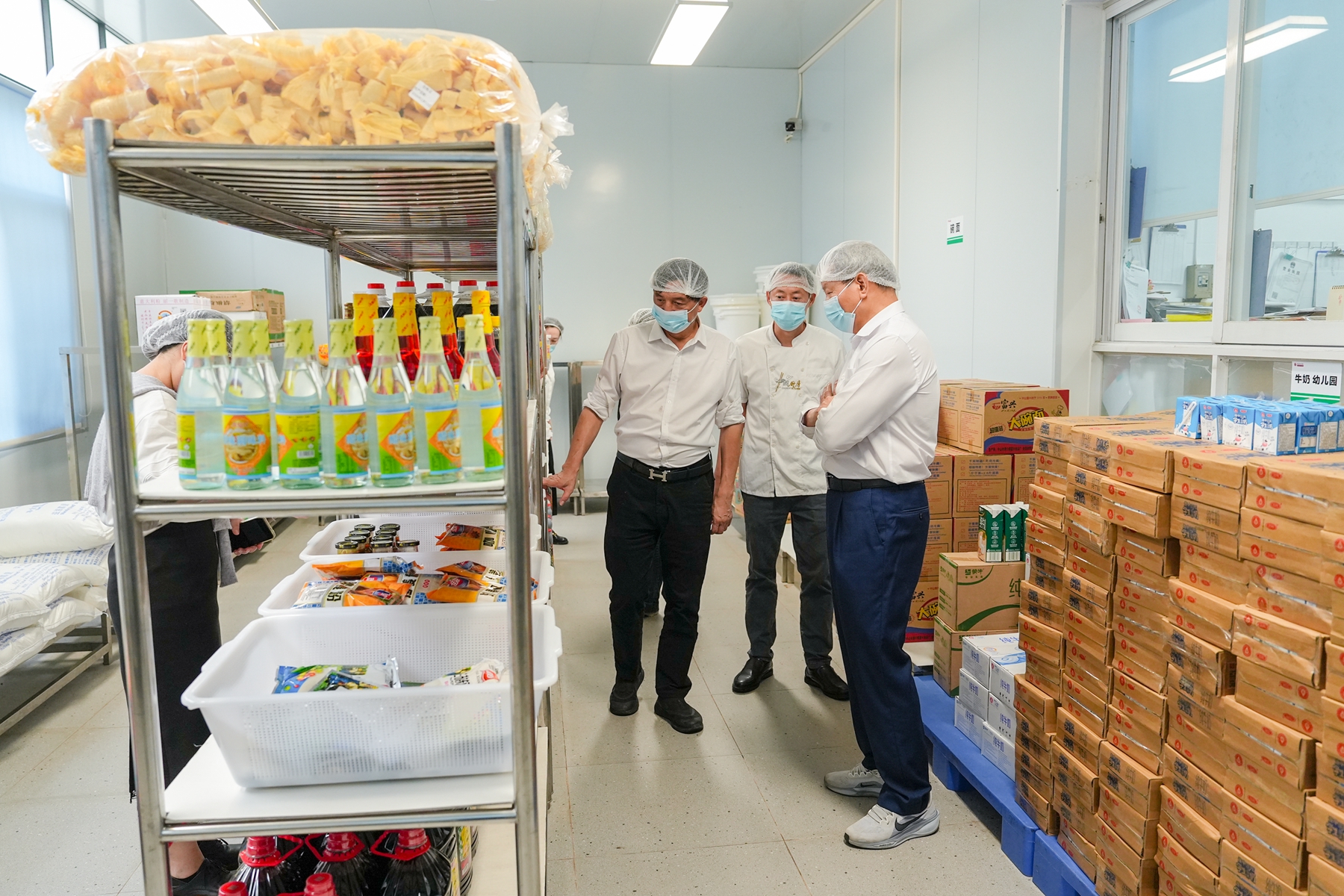午餐时间,学校校长张海经、副校长孙德新、监督员一行在学校食堂自费陪餐,与学生共同就餐,实地感受饭菜质量。张海经在陪餐过程中走到学生中间,亲切询问同学们对饭菜口味、营养搭配的感受和建议,叮嘱大家要均衡饮食、健康成长。