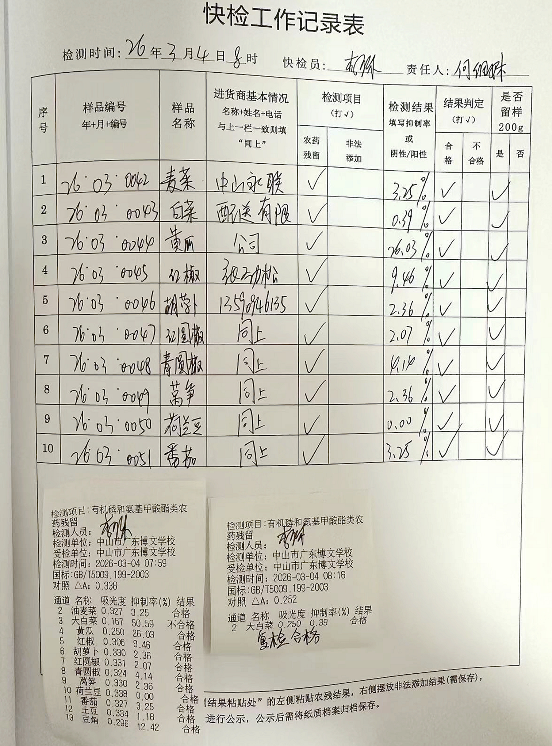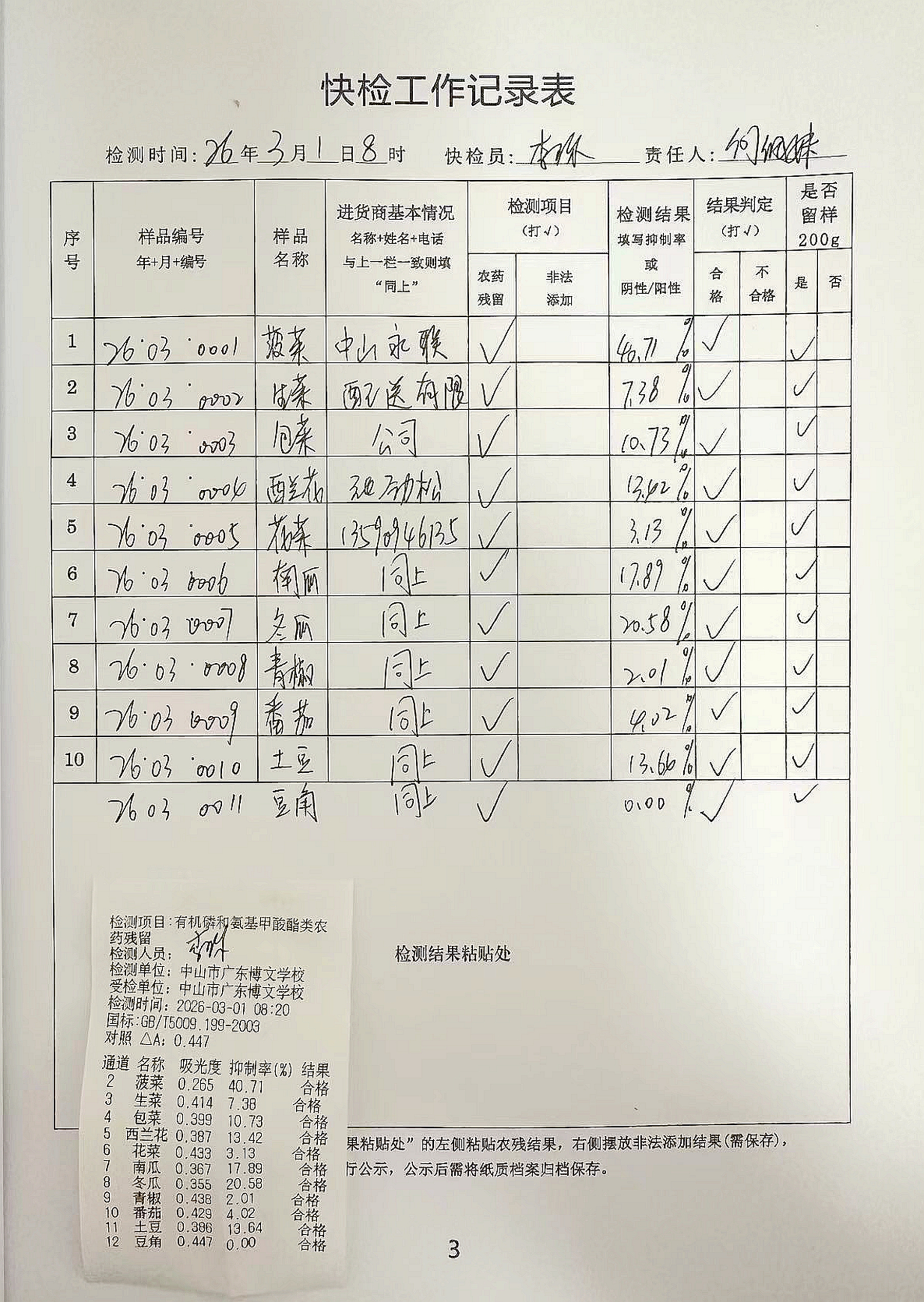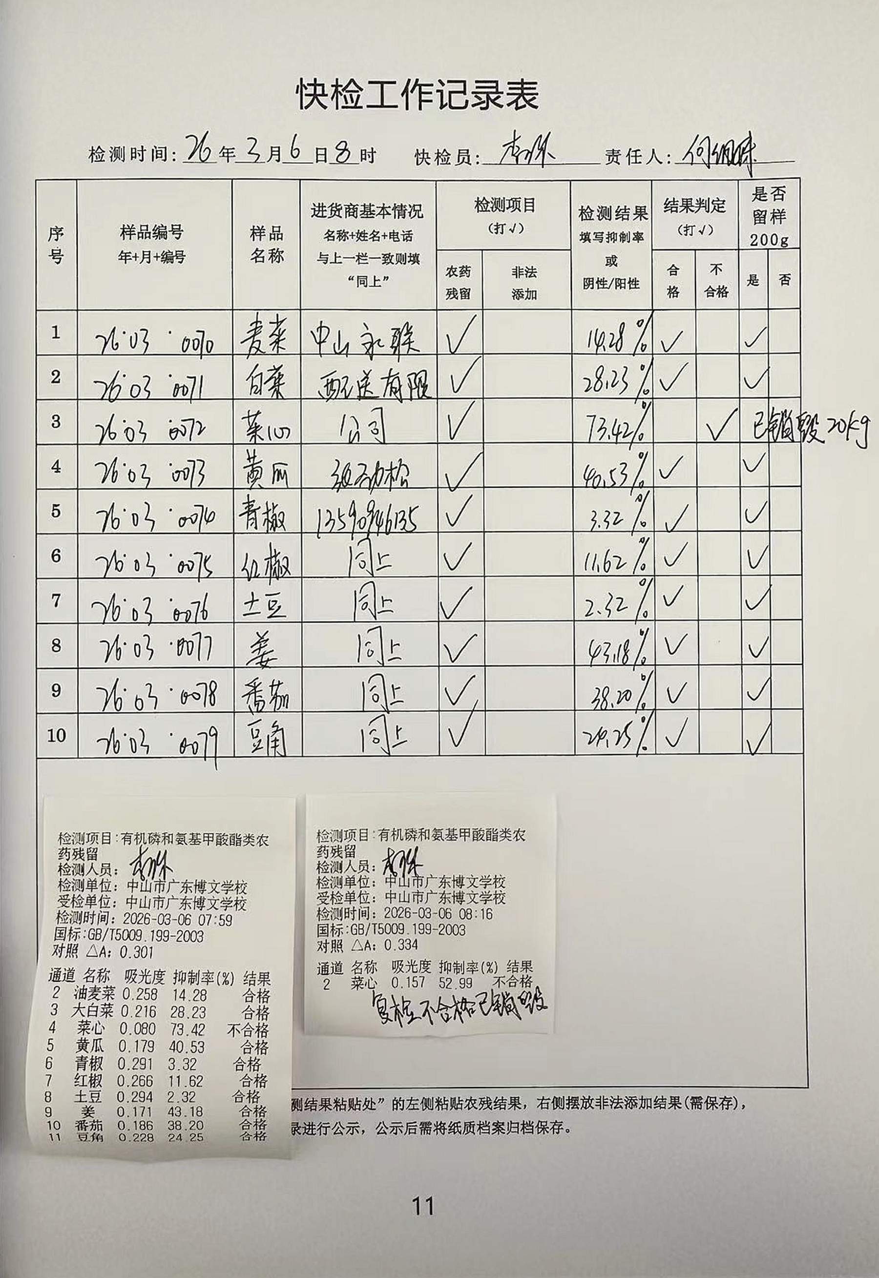 广东博文学校食堂食材快检公示第1周